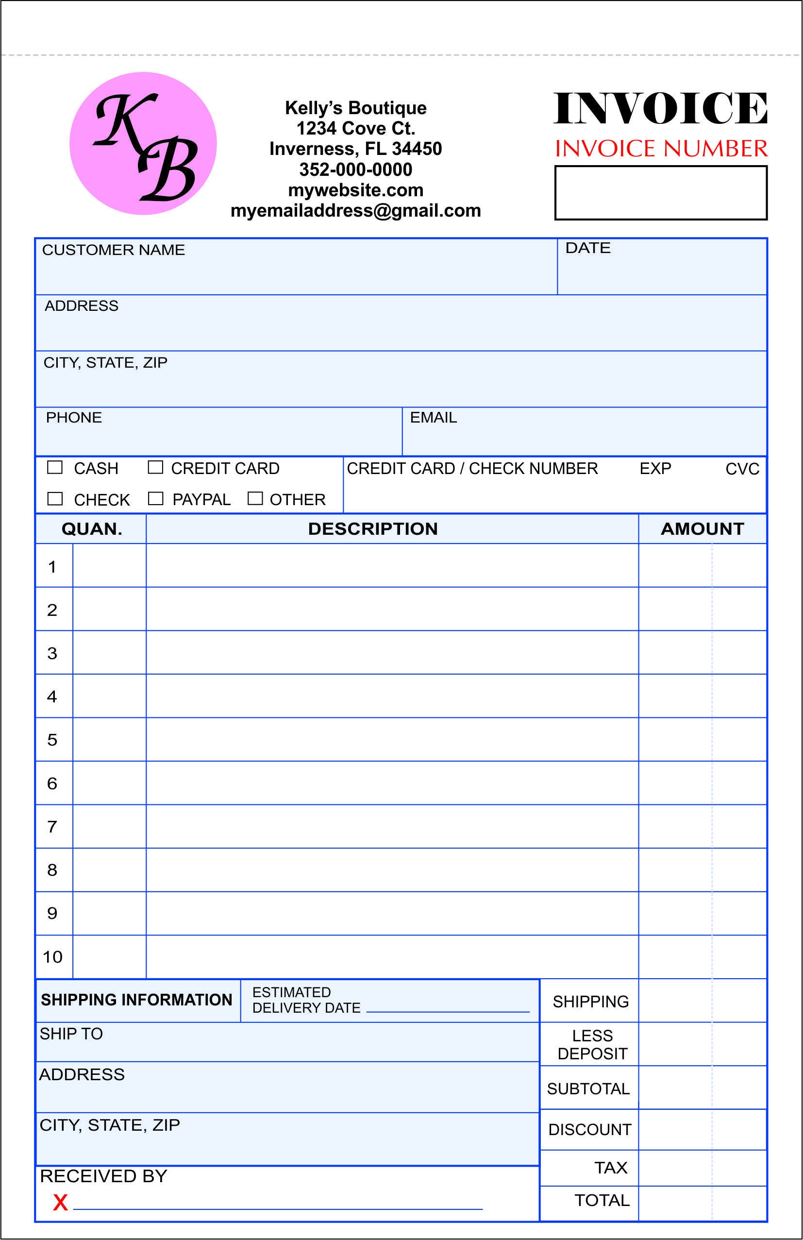 Custom 2-Part Invoice Form 8.5 x 11 Inches - NCR 2-Part Personalize...