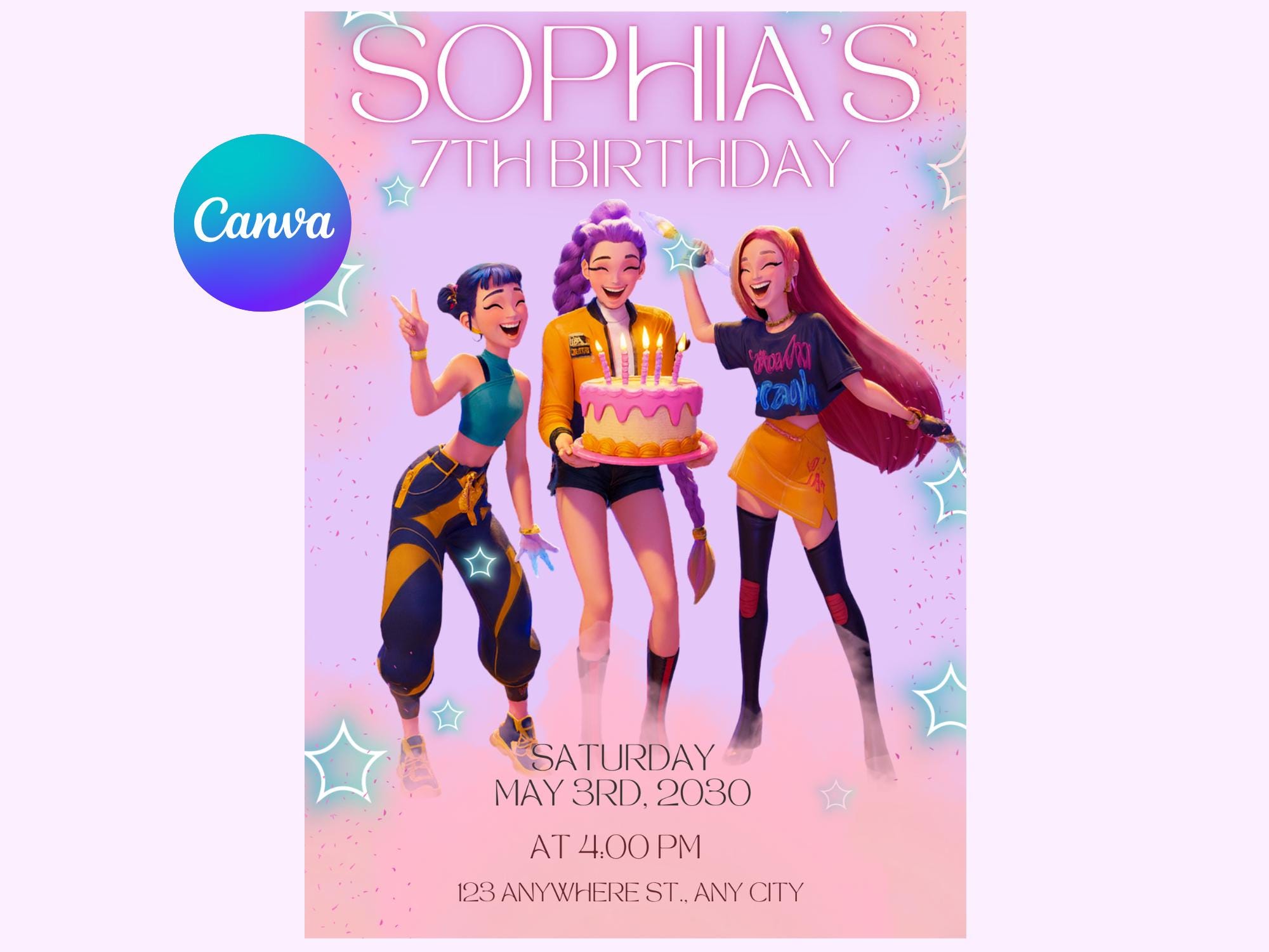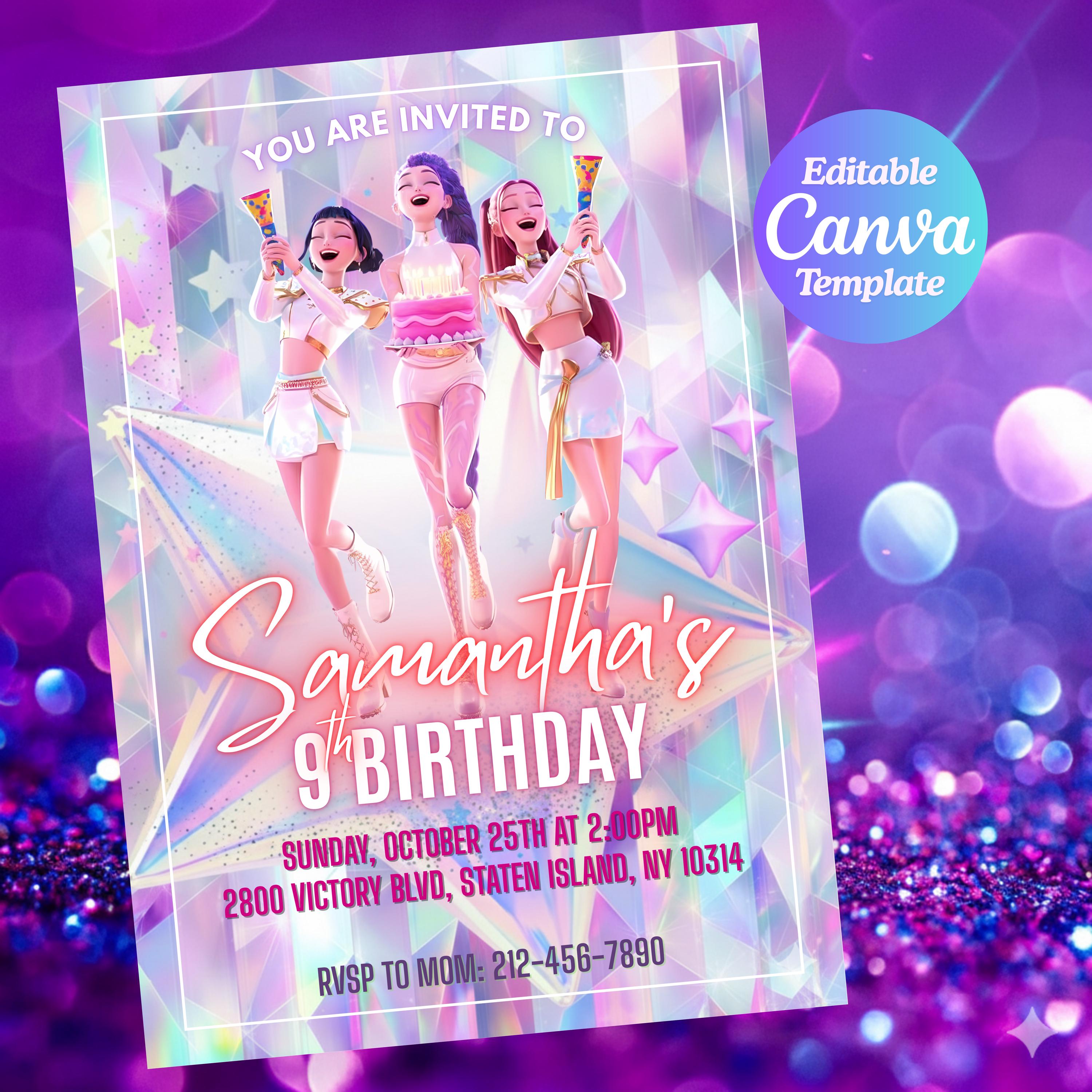 K-Pop Demon Hunters Birthday Invitation Template ️ | Editable Canva Party Invite | Anime + K-...