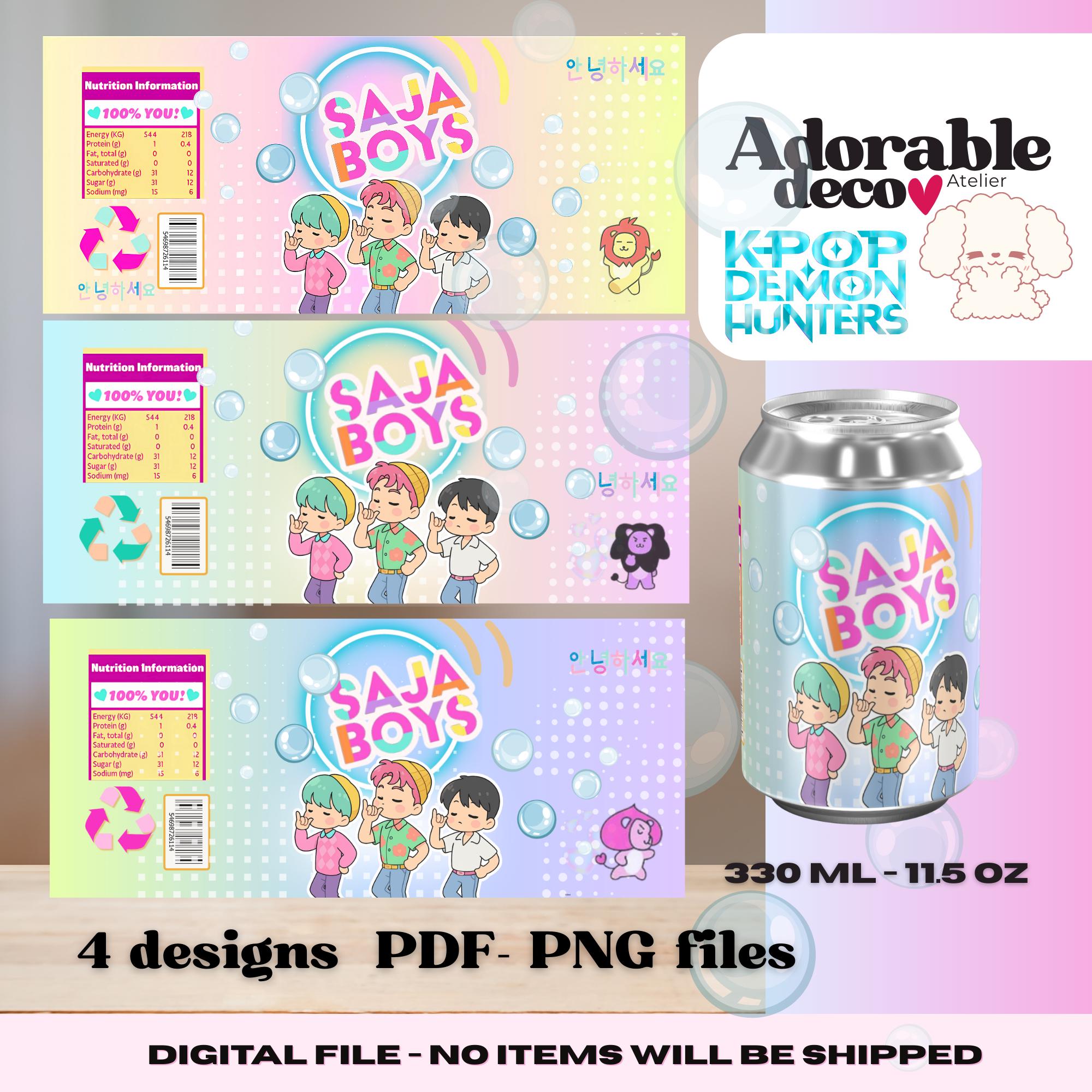 "Add a pop of power and K-pop flair to your party drinks with these cute Saja Boys SODA POP Can...