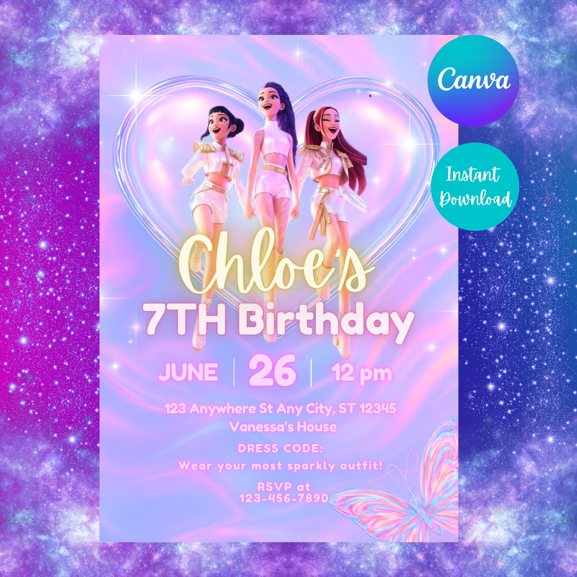 Editable KPOP Demon Hunters Invitation K Pop Birthday Invitation KP...
