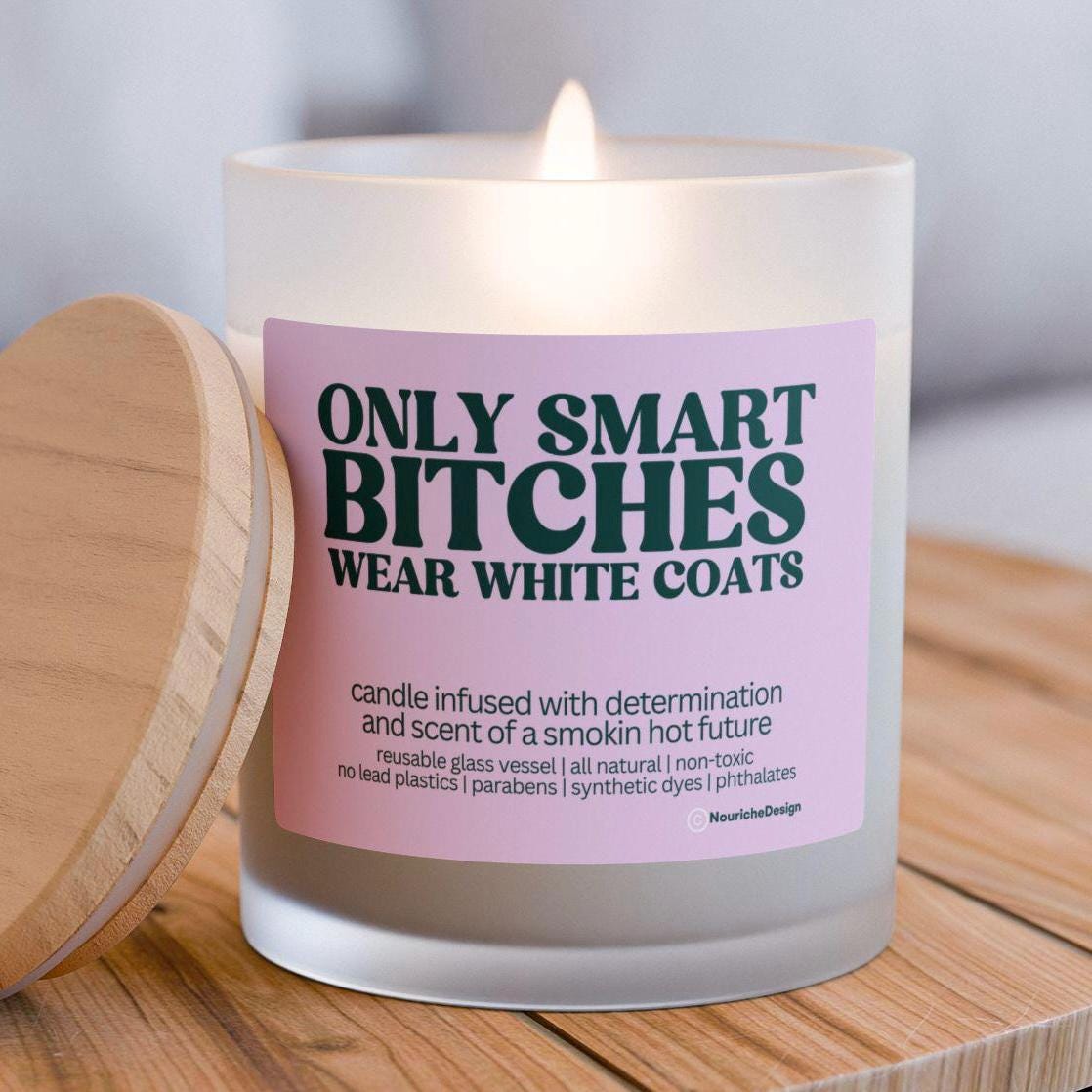 "A celebration candle for smart bitches who wear white coats, perfect for white coat ceremony g...