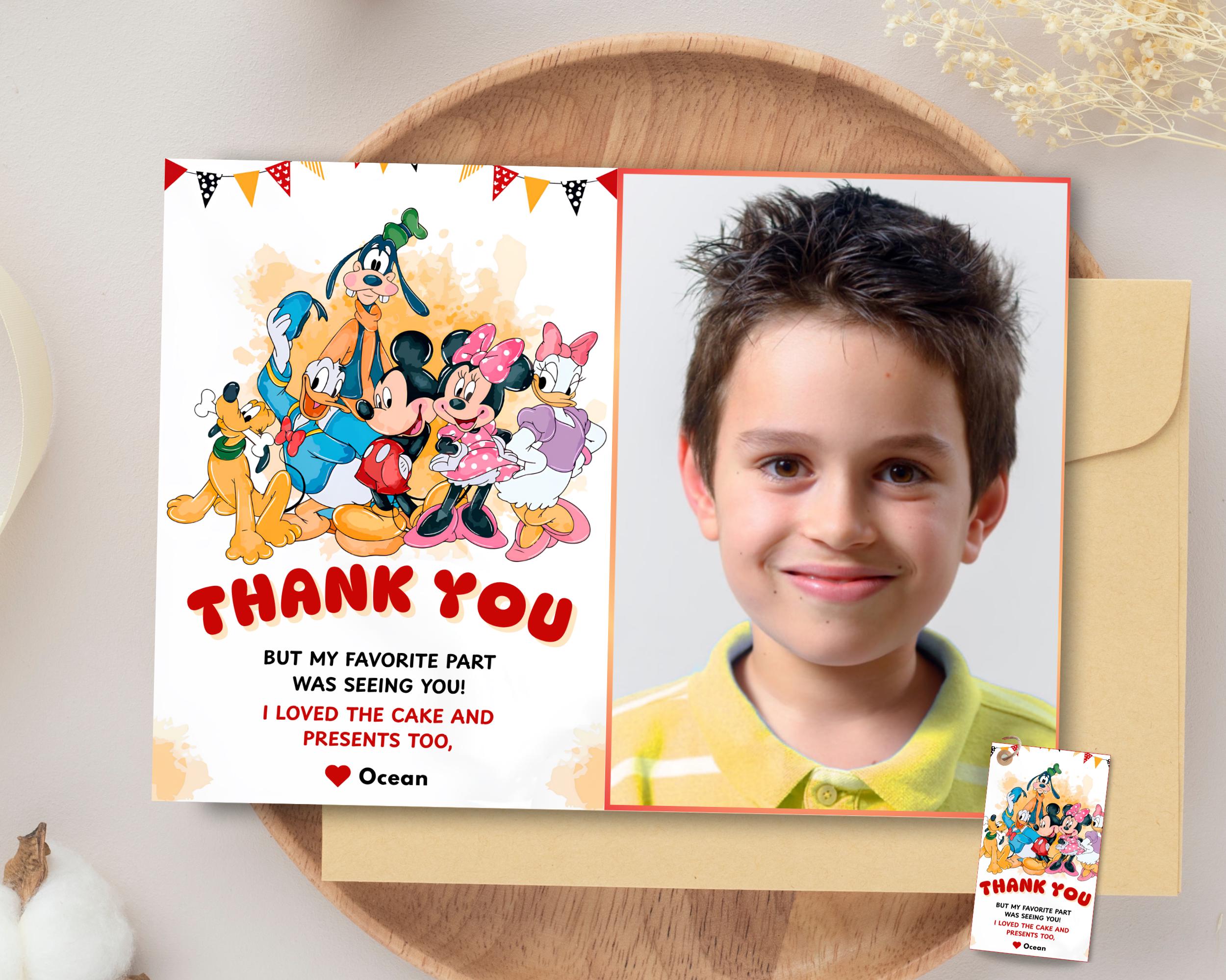 Mickey Mouse Thank you card with photo Mickey Mouse greeting photo ...