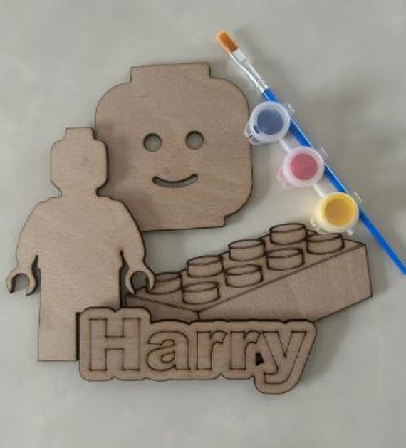 Paint your own Lego man/ brick man set, Kids craft party favours, g...