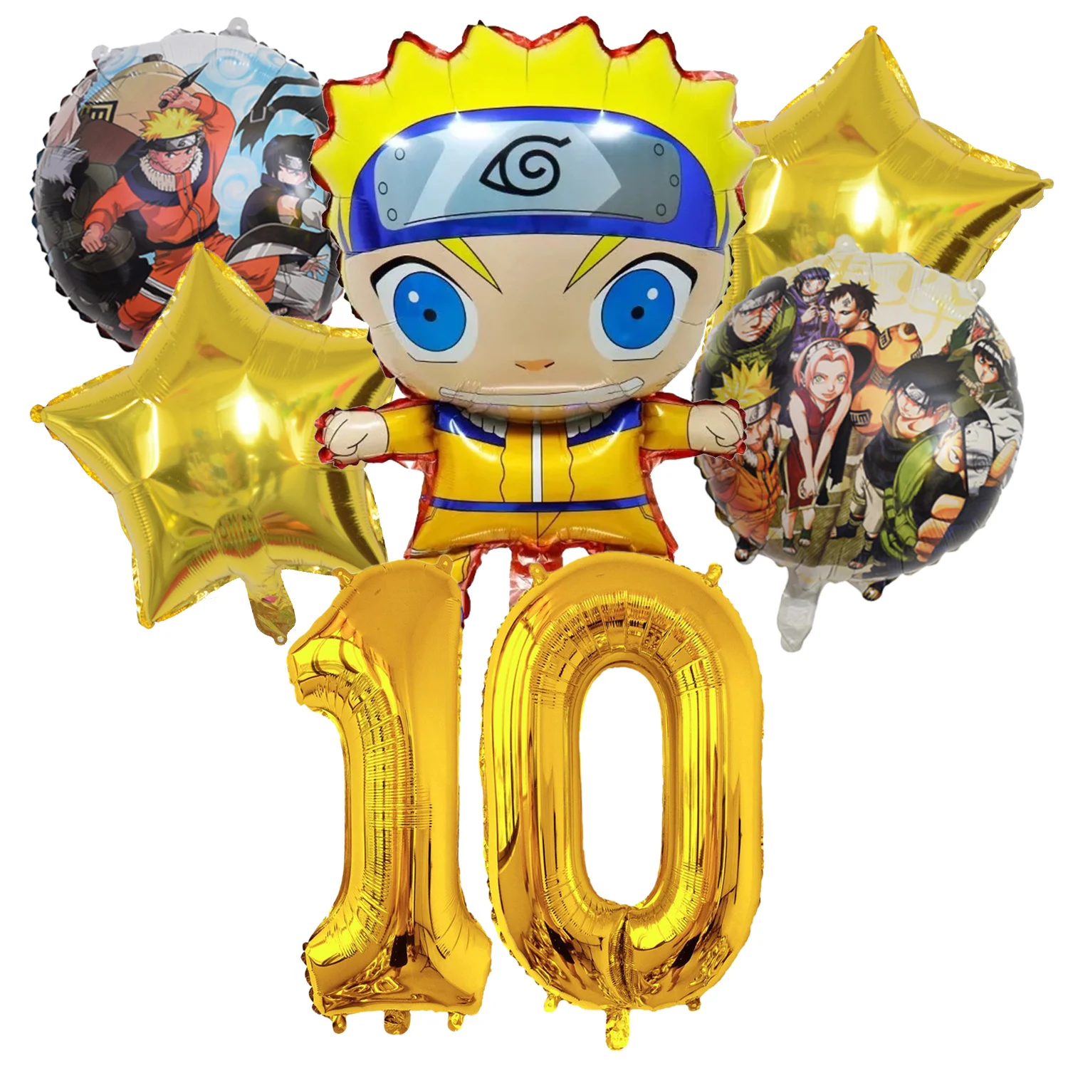 Naruto Uzumaki Birthday Ballon 6pcs Set Decorative Cartoon Anime Aluminum Foil Balloon Number Balloo...