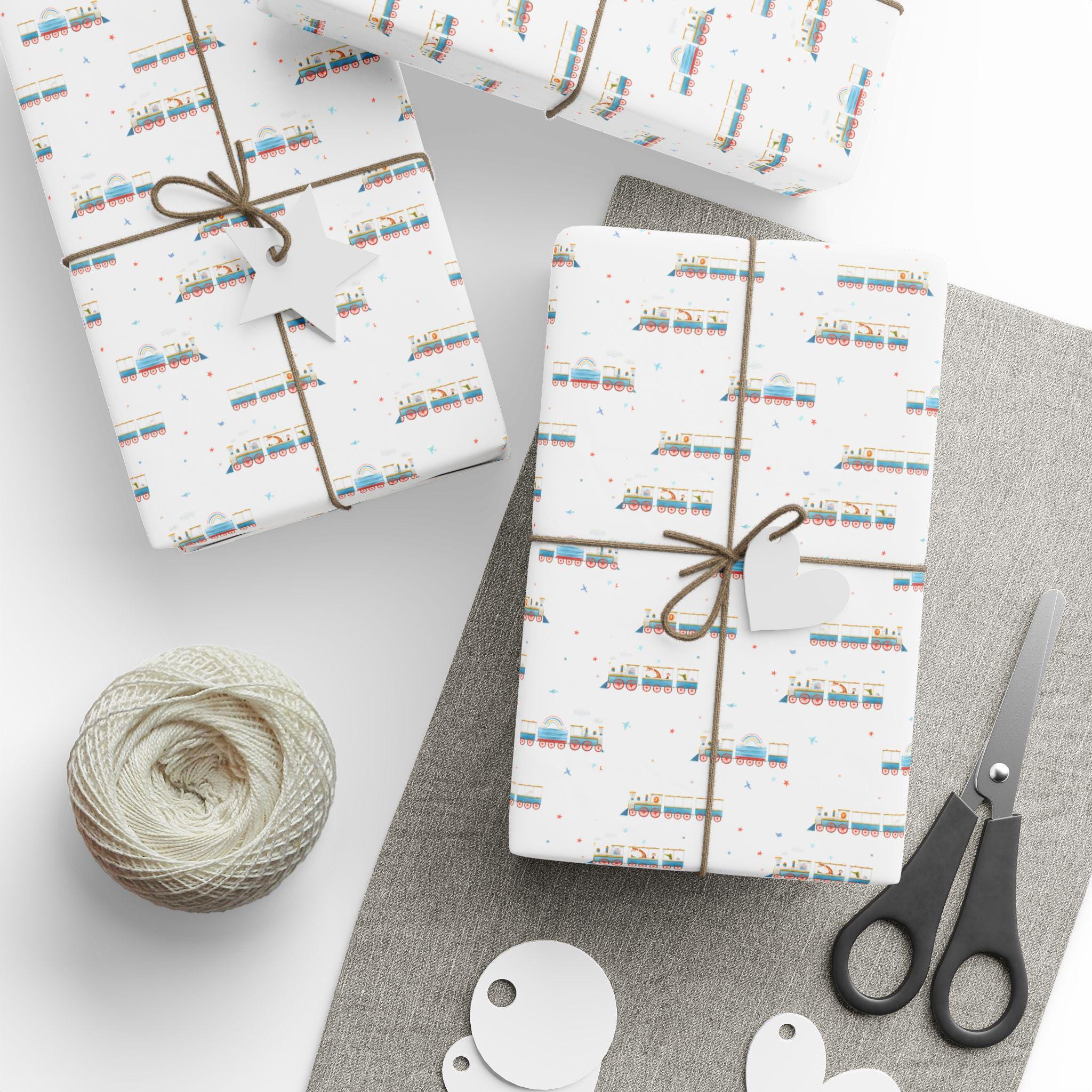 Train Wrapping Paper, Kids Gift Wrap, Kids Birthday Gift Wrap, Birt...