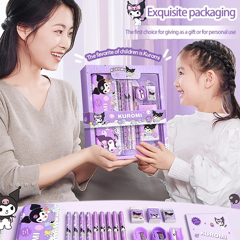 Sanrio Kuromi Stationery Set Cinnamoroll Melody Gift Box Pencil Eraser Stationery Box Children Schoo...