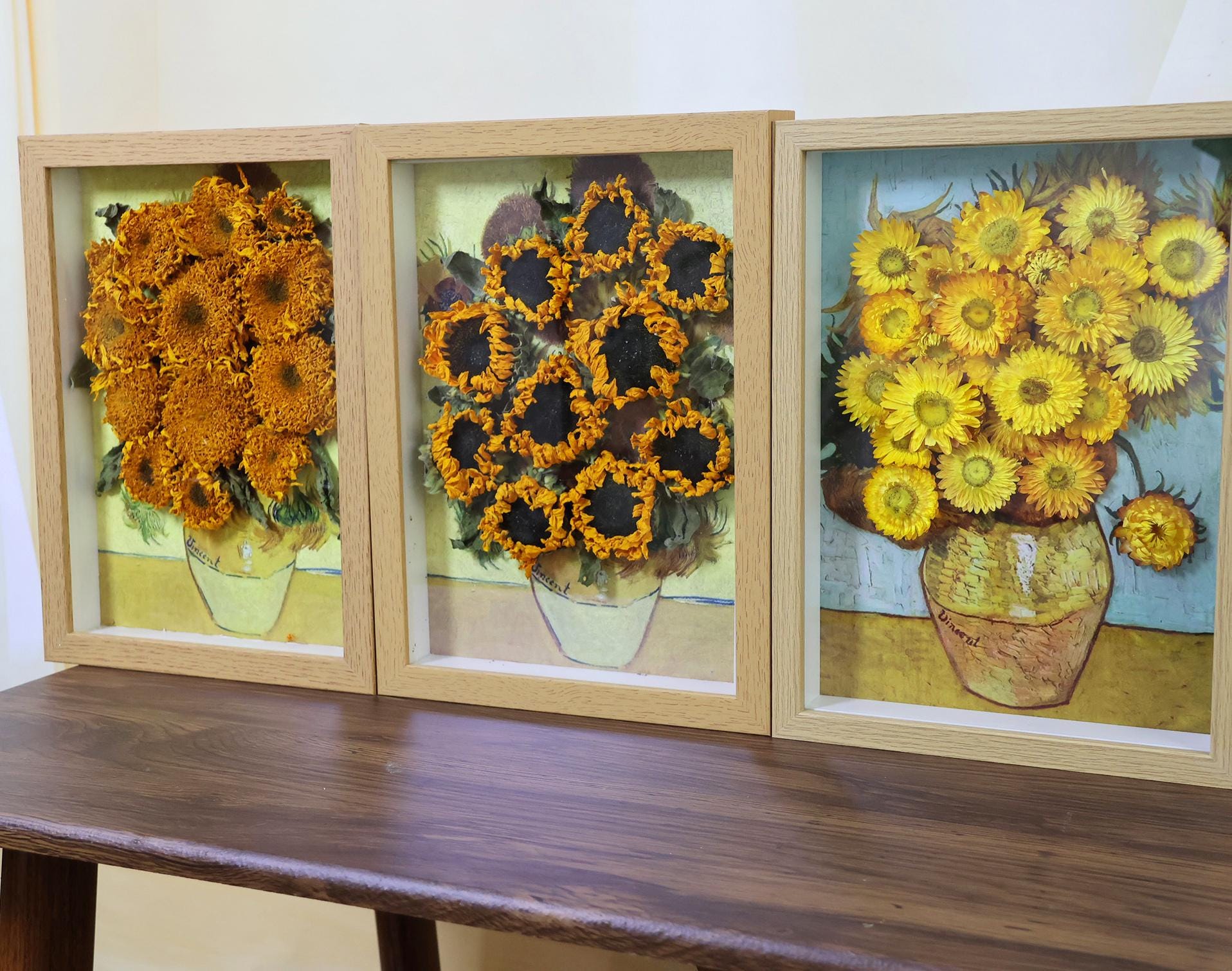 4 type dried flower frame,handmade sunflower frame,Van Gogh's sunfl...