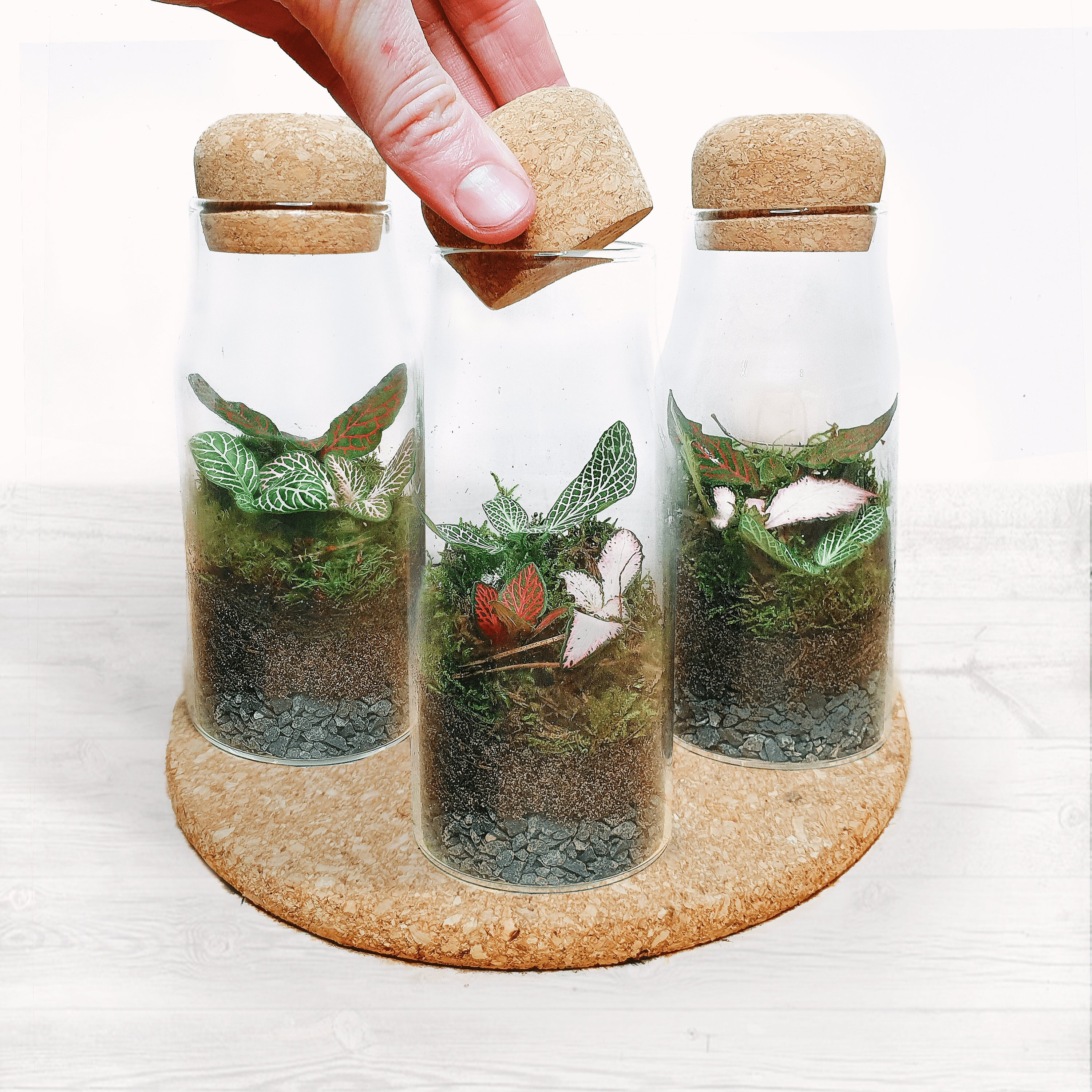 The 17cm Cork Bottle Fittonia Terrarium - Tiny Enclosed Ecosystem, ...