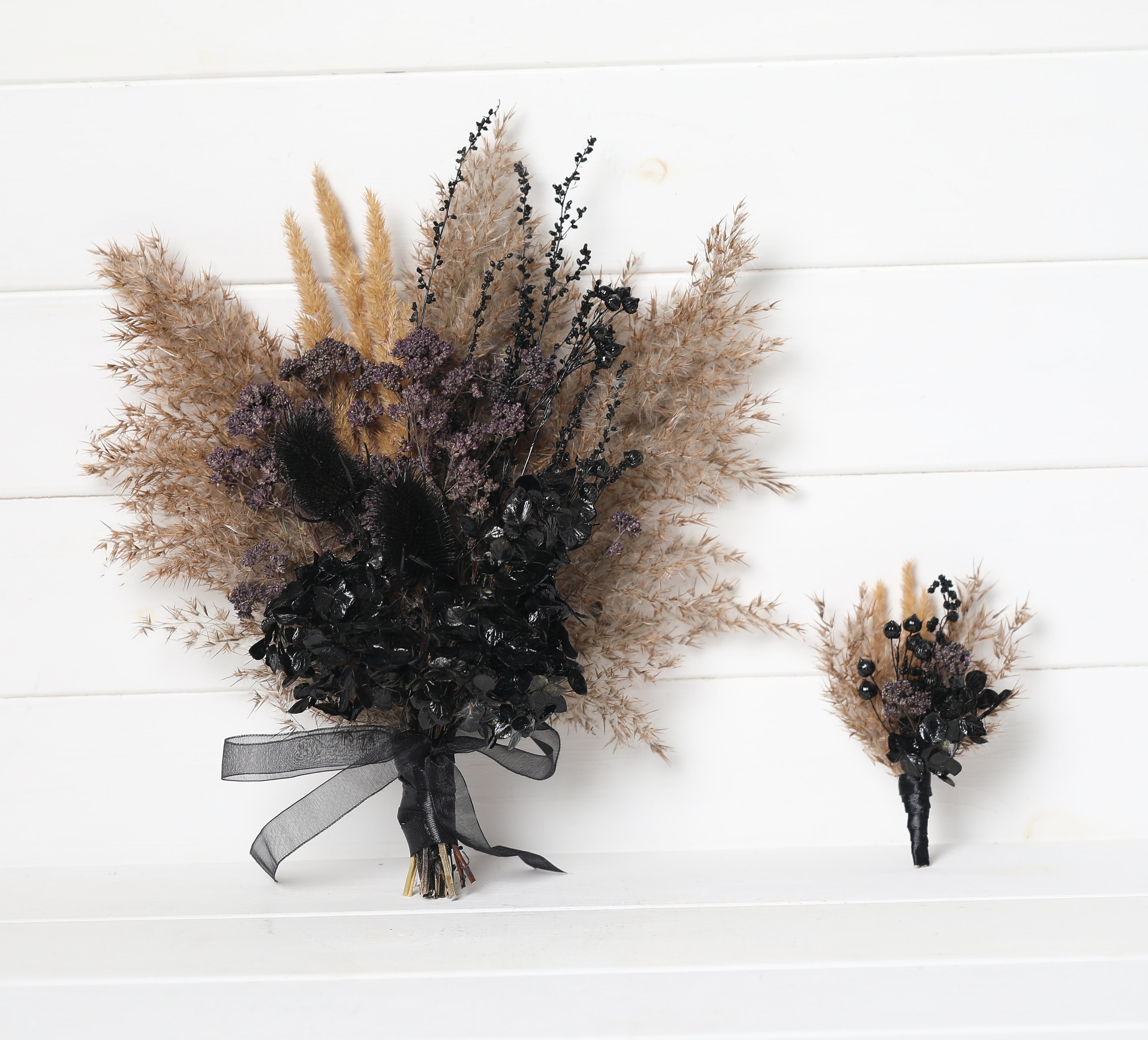 Black beige pampas grass bouquet, black wildflower pampas grass bou...