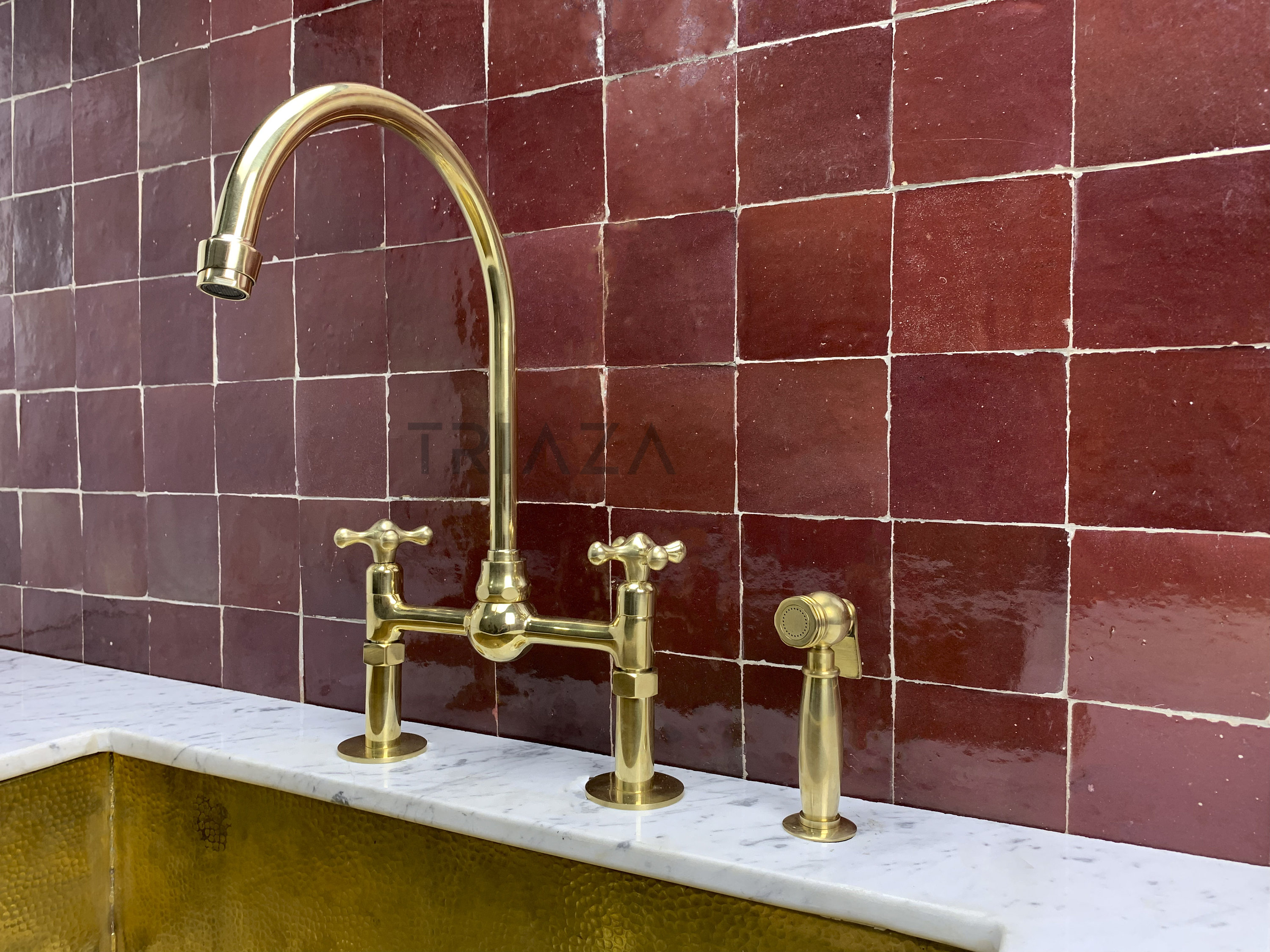 * Add sophistication to your kitchen with this timeless classic, Unlacquered solid Brass Bridge Fauc...