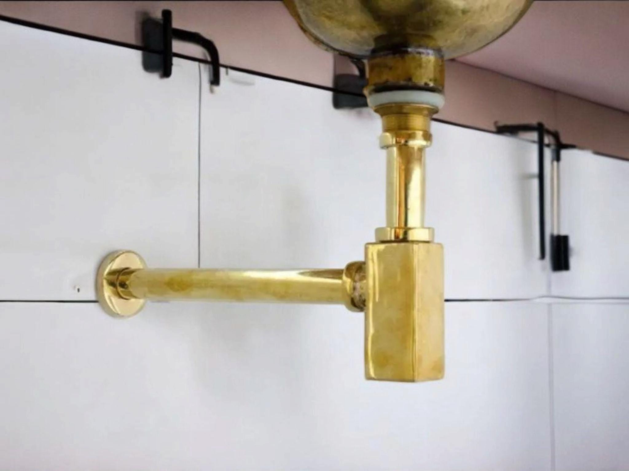 Unlacquered Brass Floor-Mounted S-Trap With Flange Pipe, Bottle Tra...