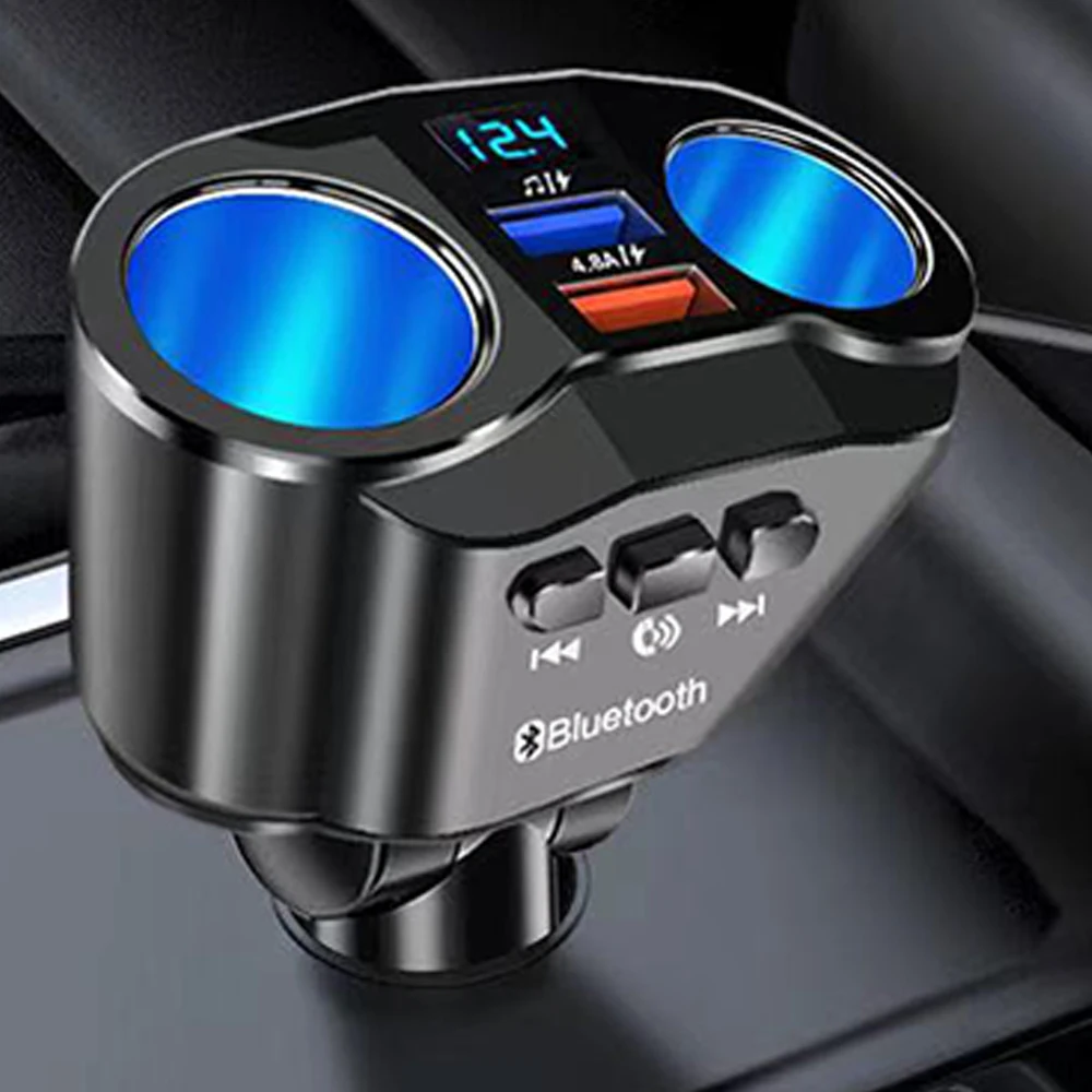 4.8A Dual USB Fast Charger Wireless Bluetooth FM Radio Modulator 12/24V Car Cigarette Lighter Transm...