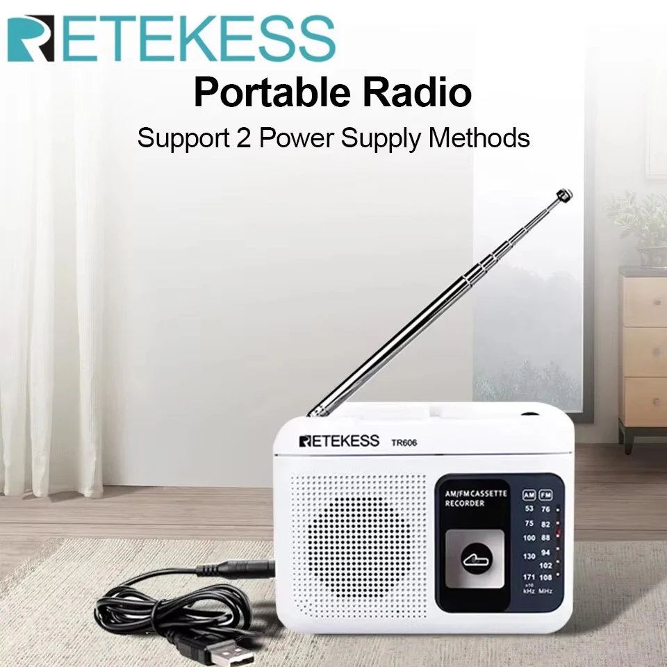 Retekess TR606 Radio FM AM Radio Cassette Playback Portable Radios FM AM Recording 3.5mm Earphone MI...