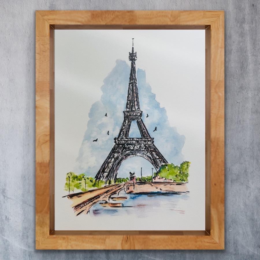 Watercolour Art Eiffel Tower, Simple Paris France Artwork, Eiffel P...
