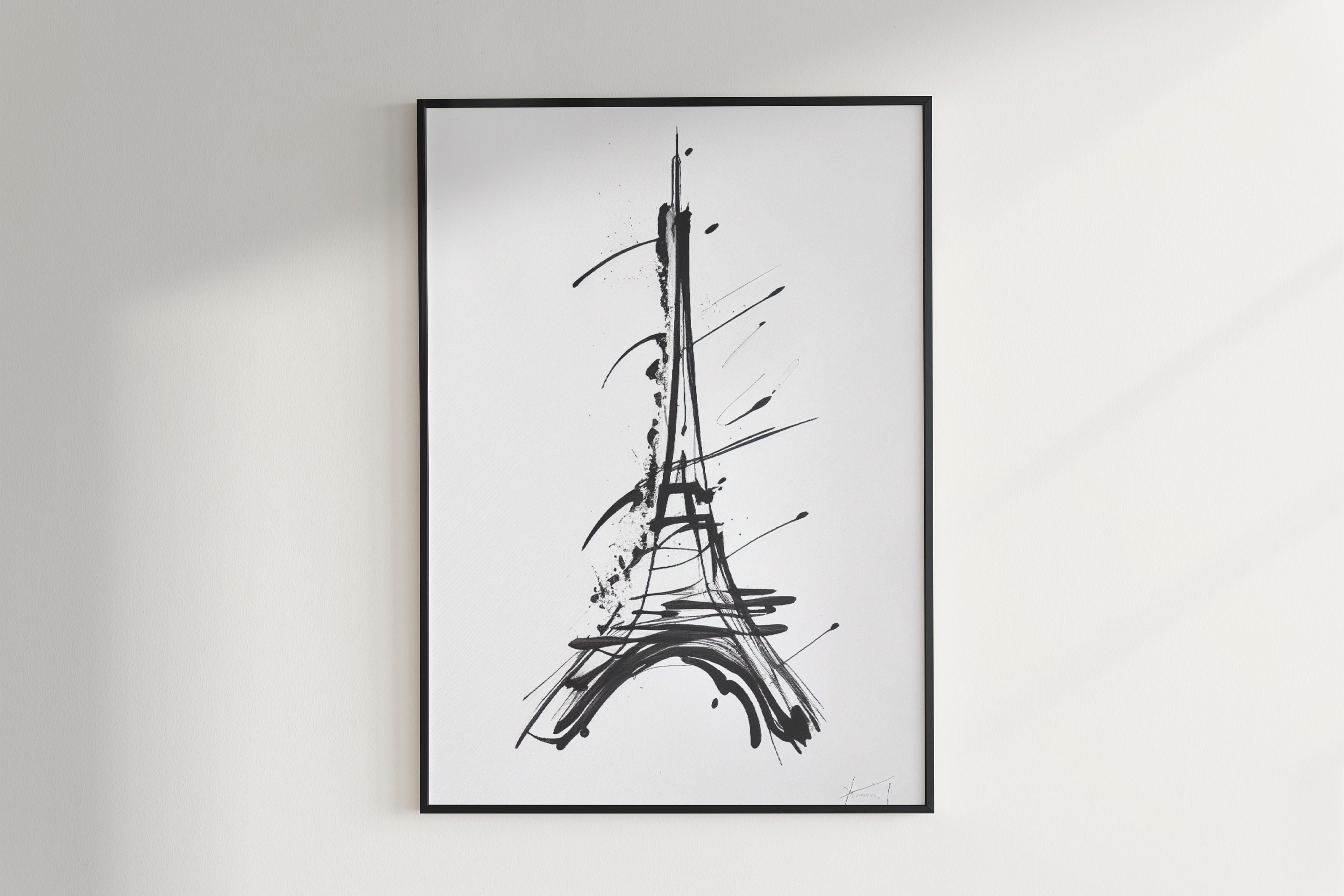 "Original, NOT A PRINT - Eiffel Tower art, Paris charcoal sketch, minimal Eiffel Tower, France,...