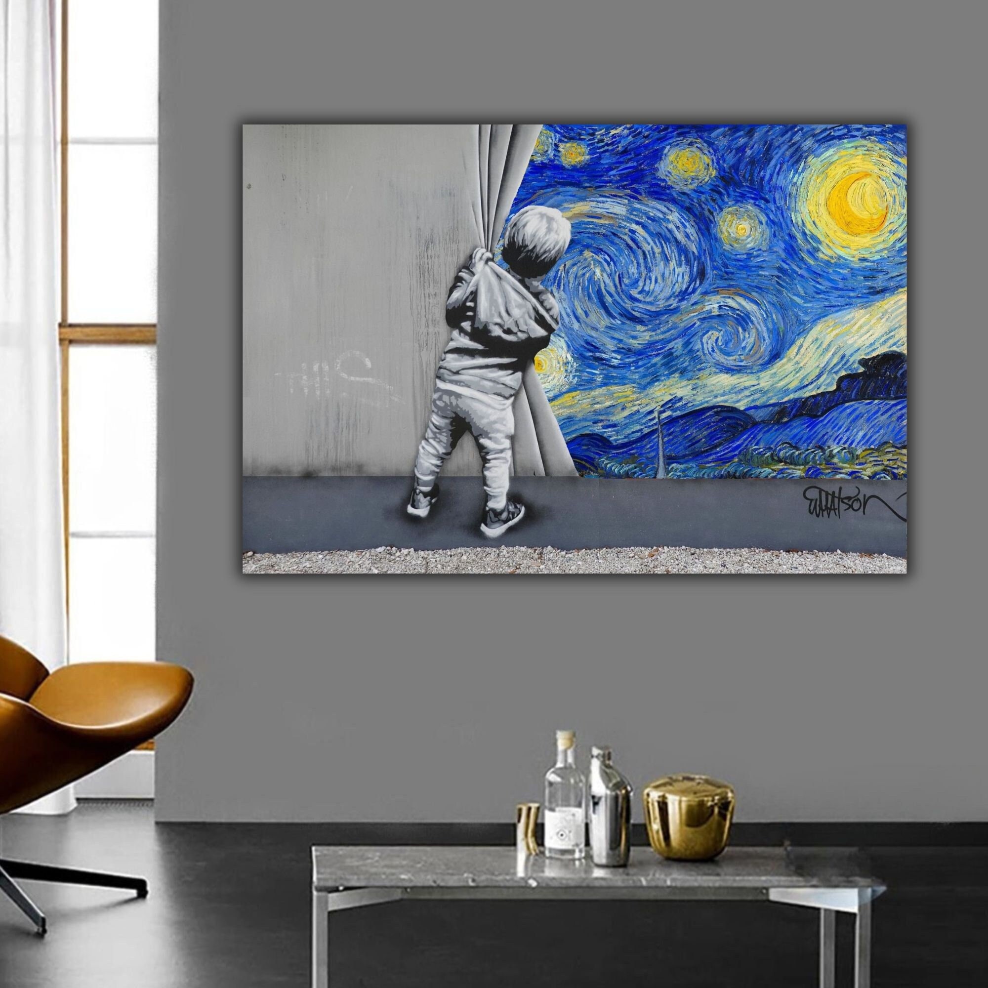 • Banksy Van Gogh Wall Art, Banksy Starry Night Canvas Print, Starry ...