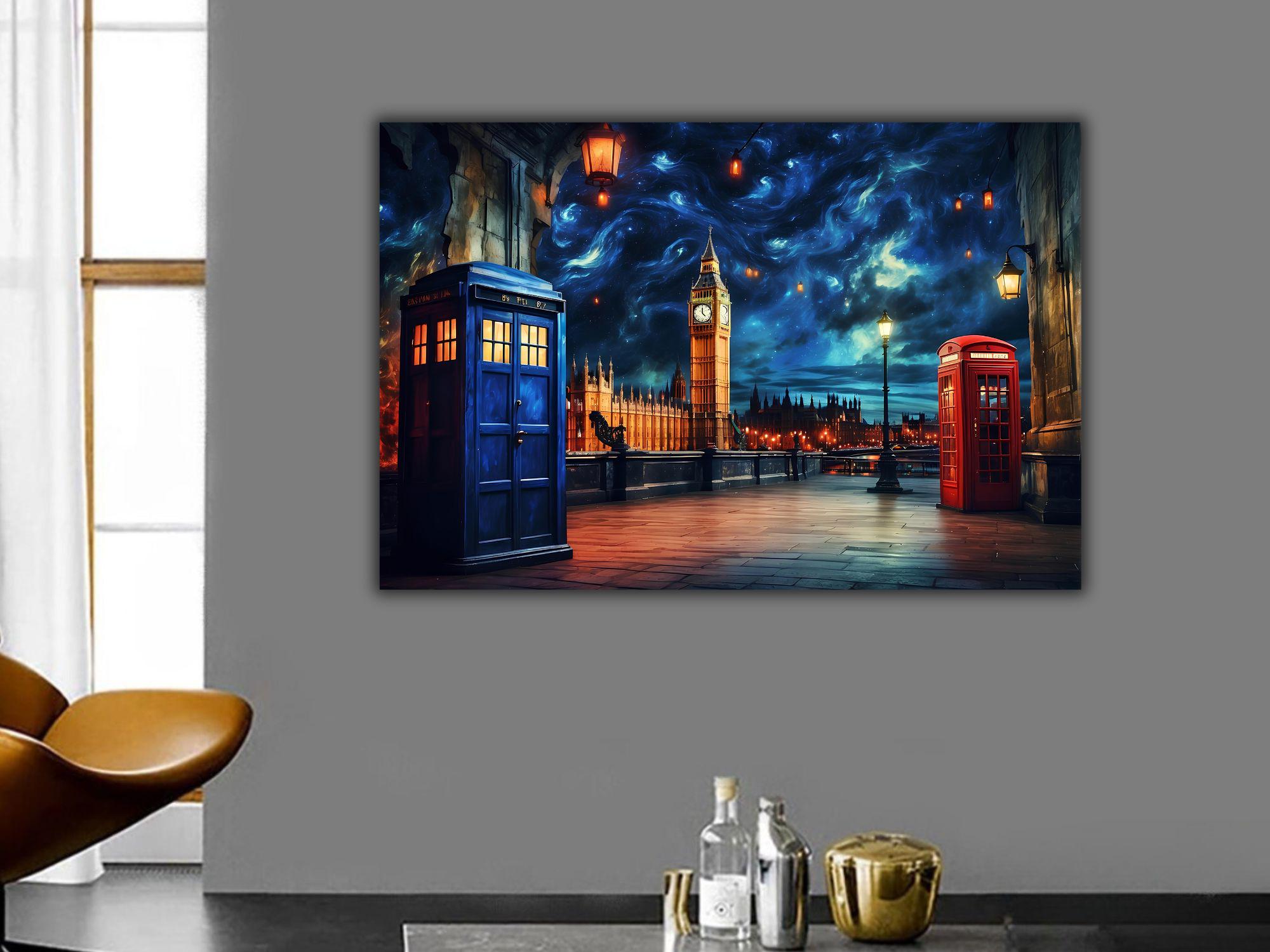 • Doctor Who TARDIS Canvas Wall Art, Doctor Who Starry Night Inspired...