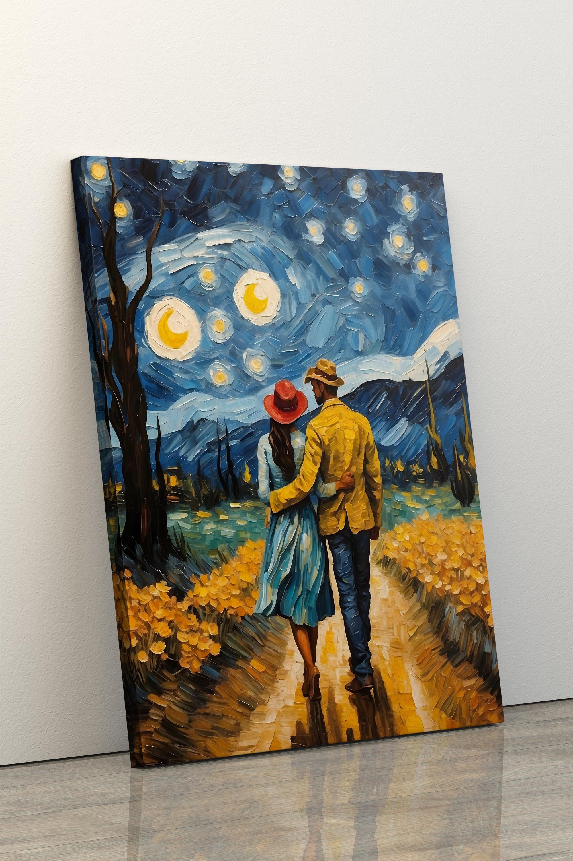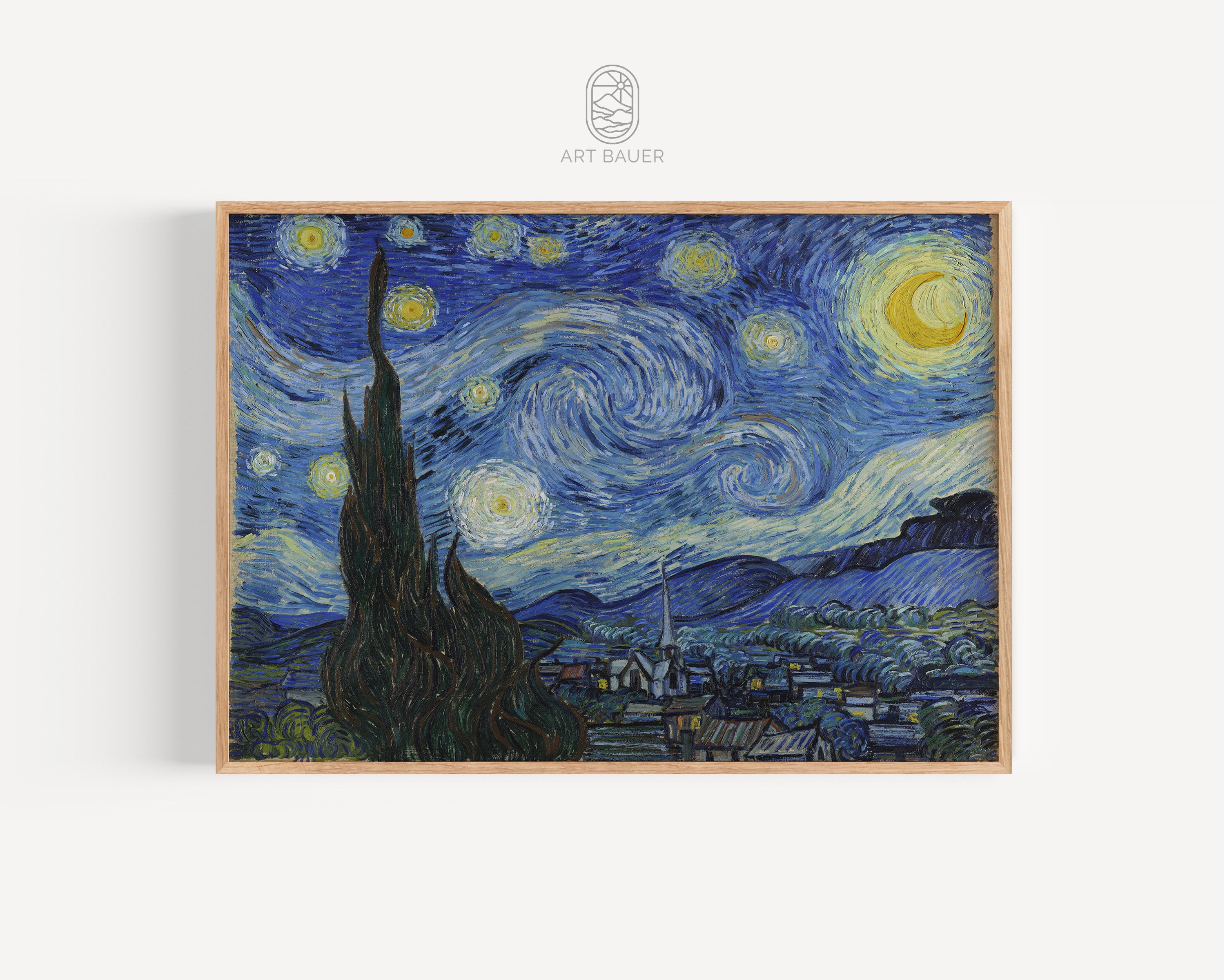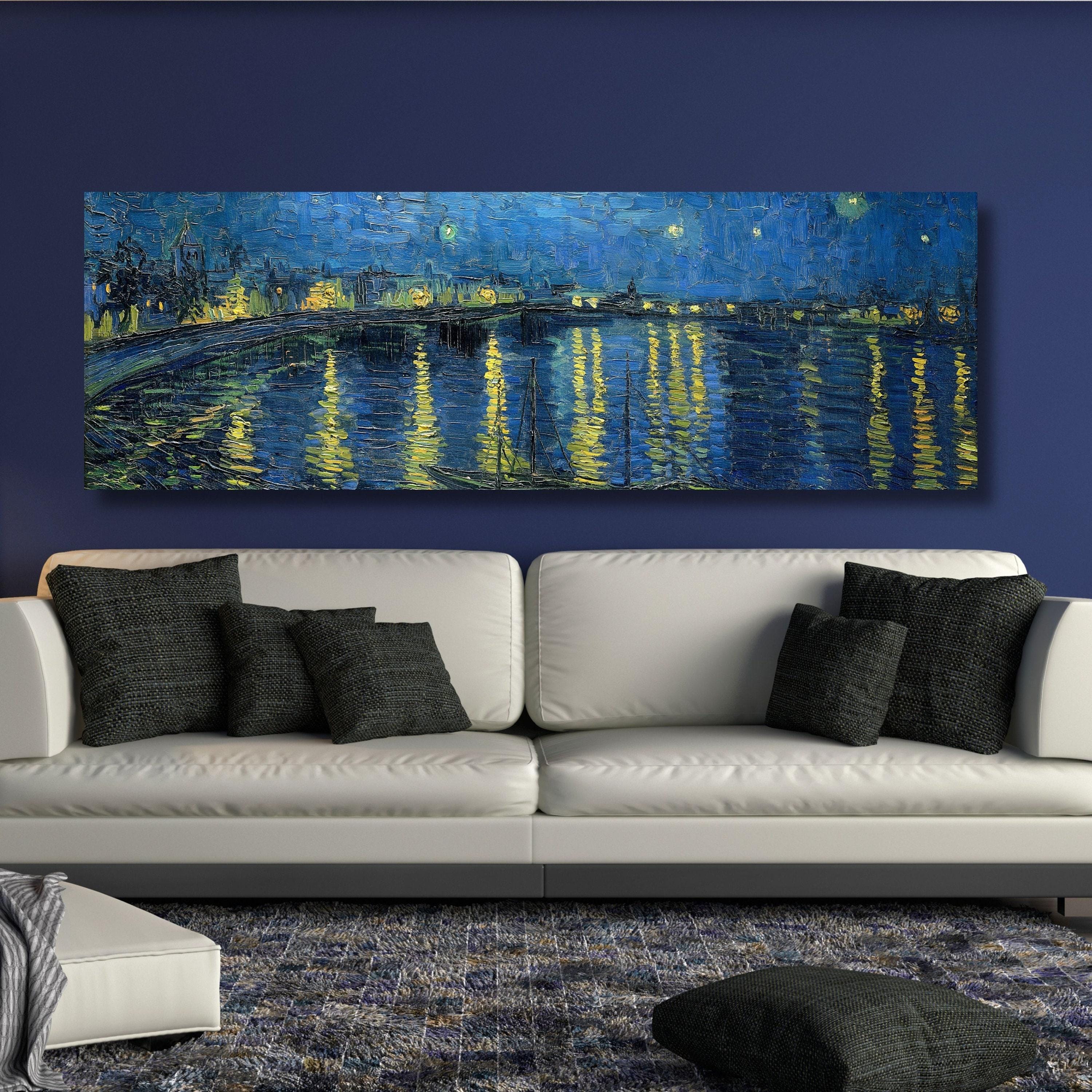 • Starry Night Van Gogh Print, Starry Night Canvas, Blue Landscape, P...