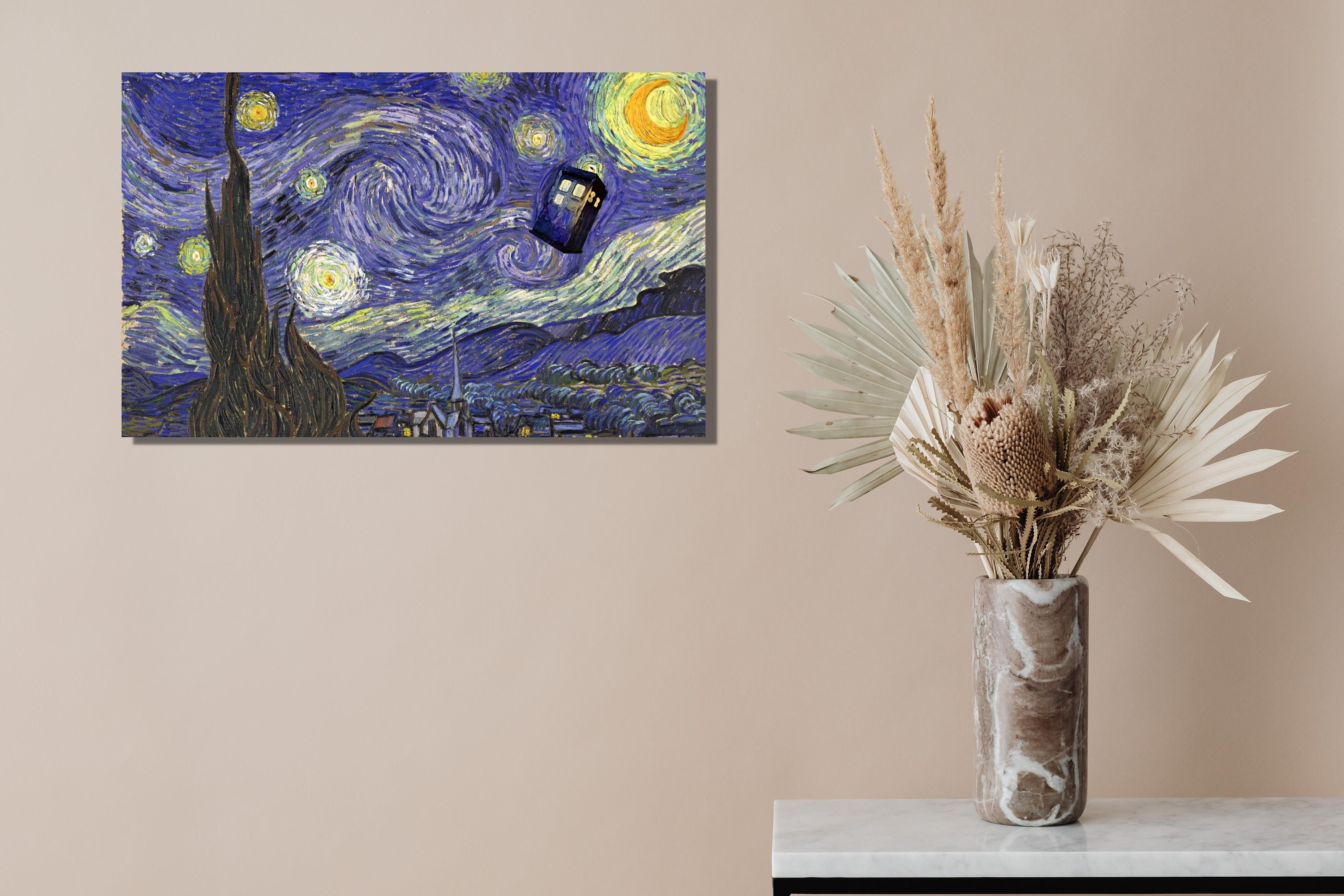 Doctor Who TARDIS Canvas Wall Art|Van Gogh Starry Night Inspired|Whovians Fandom Gift|Tardis Dr Who ...