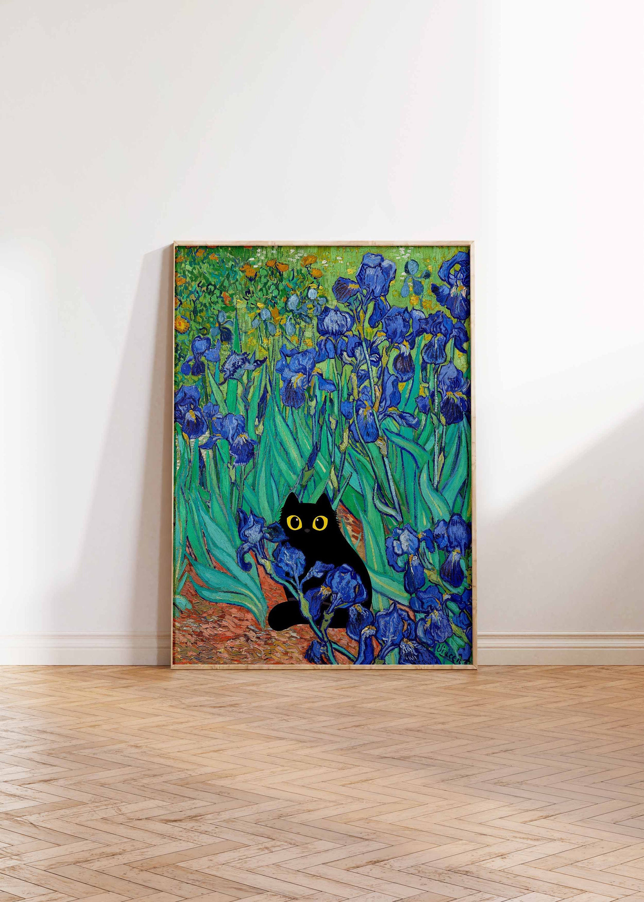 Van Gogh Print, Van Gogh Art Print, Irises and a Cat Print, Van Gog...