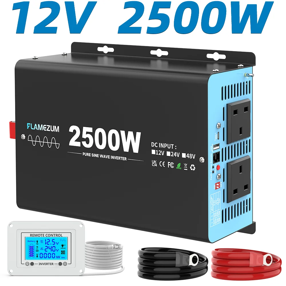 U.K Plug Pure Sine Wave Power Inverter 2500W 5000W(Peak) DC 12V To ...