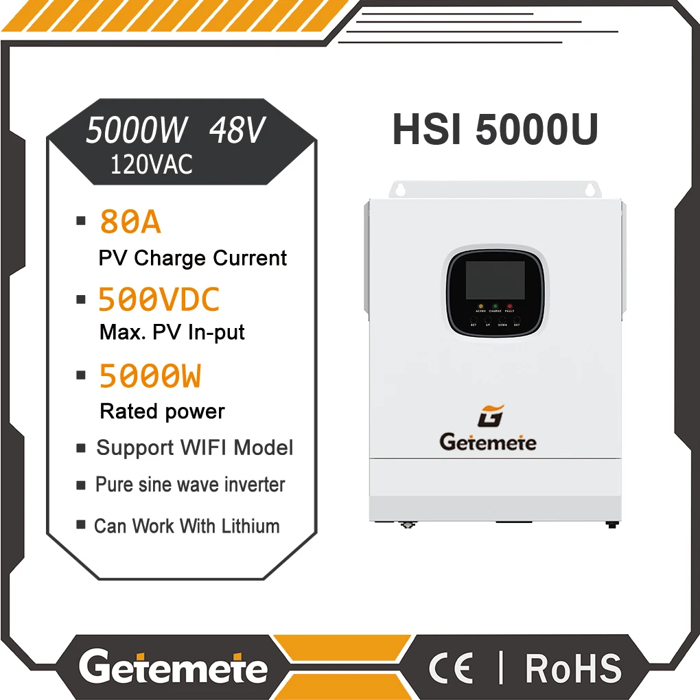 GTMT 5000W Hybrid Solar Inverter 48V to 110V/120V Off-grid Inverter With MPPT 80A Charger Pure Sine ...