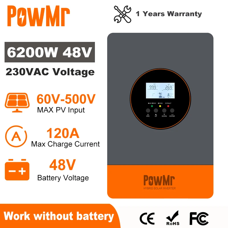 PowMr 6.2KW Hybrid Solar Inverter 48V 220V Off grid Inverter With MPPT 120A Charger Work Without Bat...
