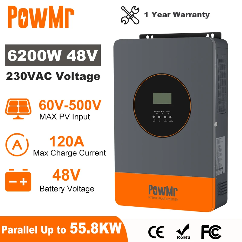 PowMr 6.2KW Hybrid Solar Inverter 48V 220V Off Grid Inverter with MPPT 120A Charger Work without Bat...