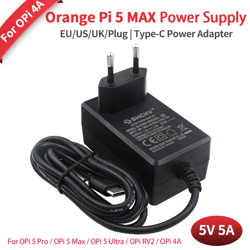Orange Pi 5 Ultra Power Adapter 5V 5A USB Type-C Power Supply Optional EU US UK Plug for OPi 5 Max /...