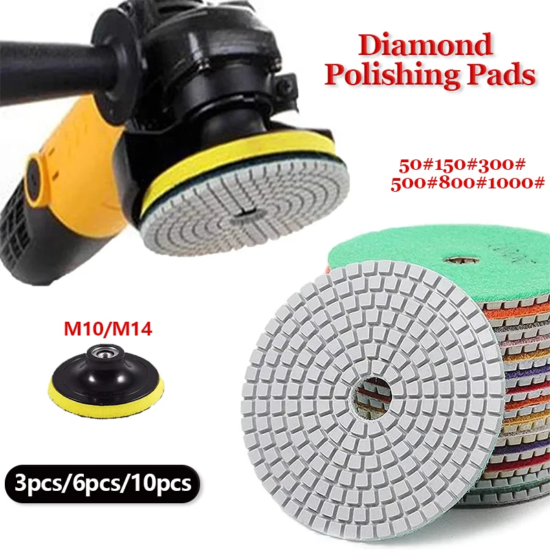4-inch Diamond Water Polishing Pads 50-1000 Grit Diamond Sanding Wheel with Backer Pad for Polishing...
