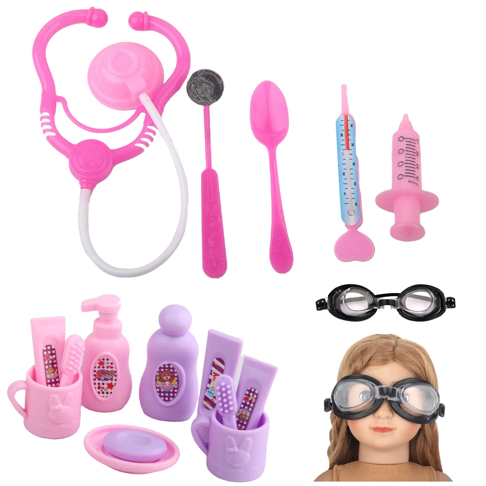 18 Inches American Doll Accessories Toy Toilet Set. Doctor Set, Swimming Goggles For 43cm Baby New B...