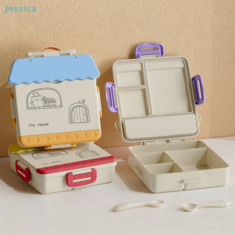 Cute House-Shaped Bento Box - 2-Tier Divided Lunch Container with Spoon for Kids/Adults (Food-Grade)