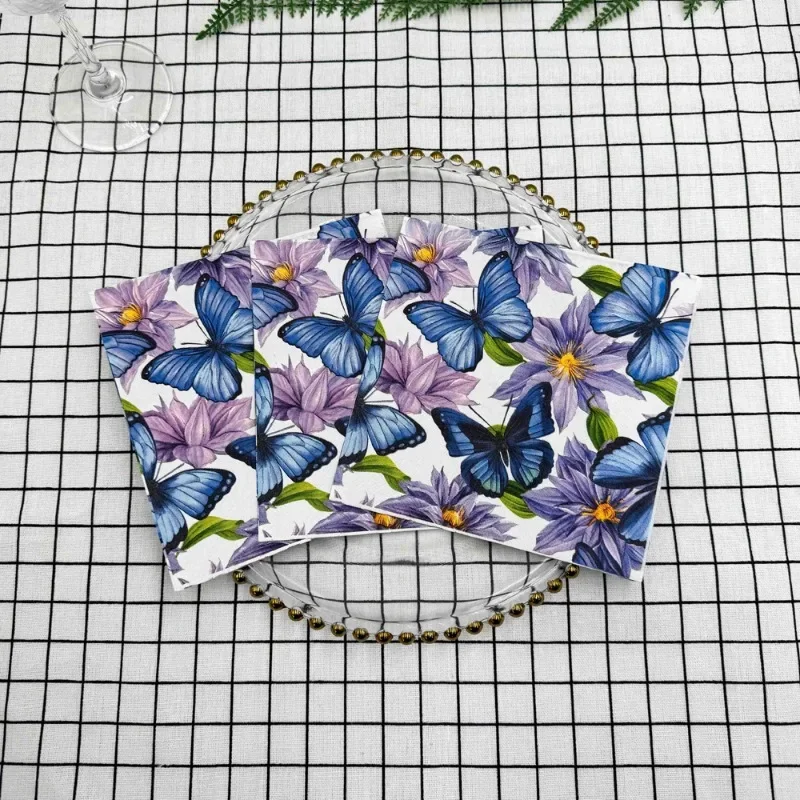 20pcs 33cm 2-Ply Oil Painting Butterfly Flower Printed Napkins Party Color Paper Cup Flower Folding ...