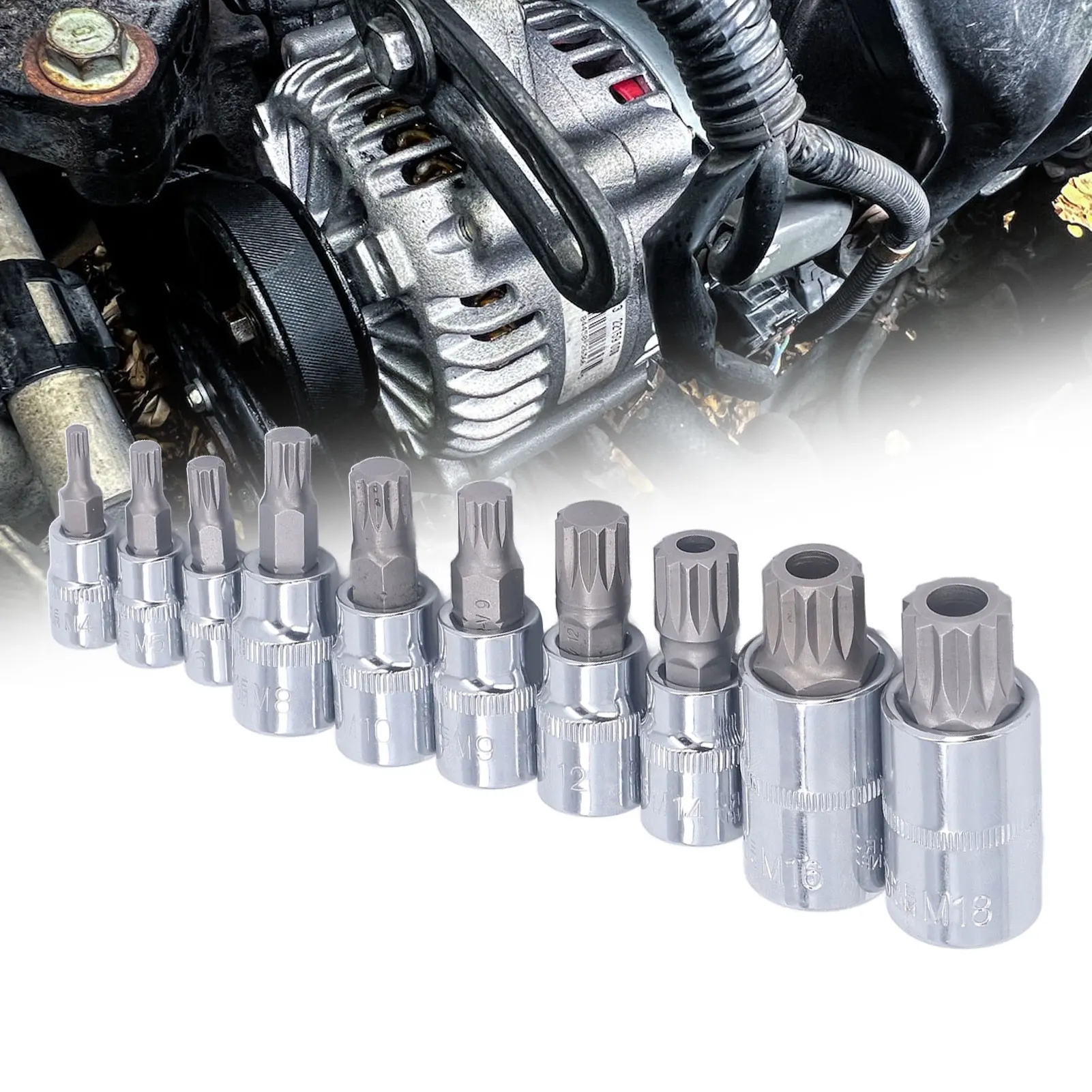 Triple Spline Bit Socket M4 To 1/4in 3/8in 1/2in Drive Bit Socket S...