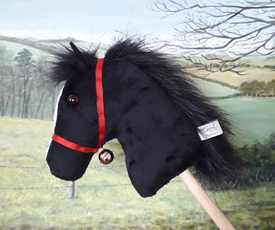 Black Mini Hobby Horse Mascot - Handmade Small Bell Rattle Toy Gift...