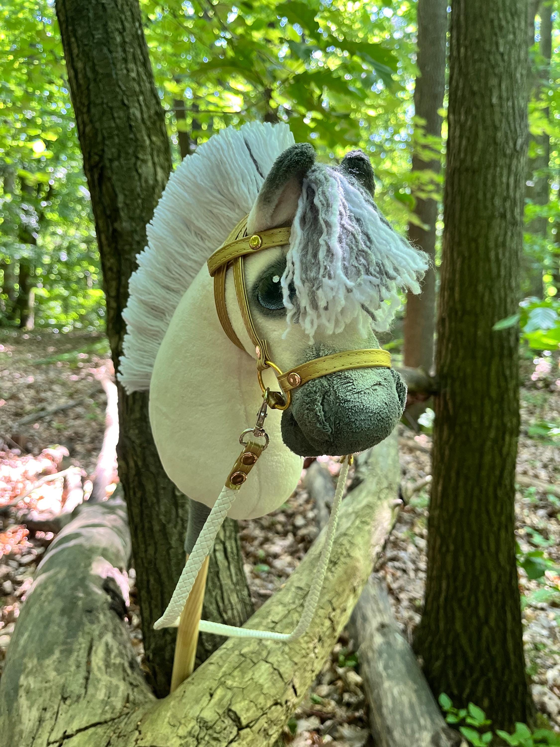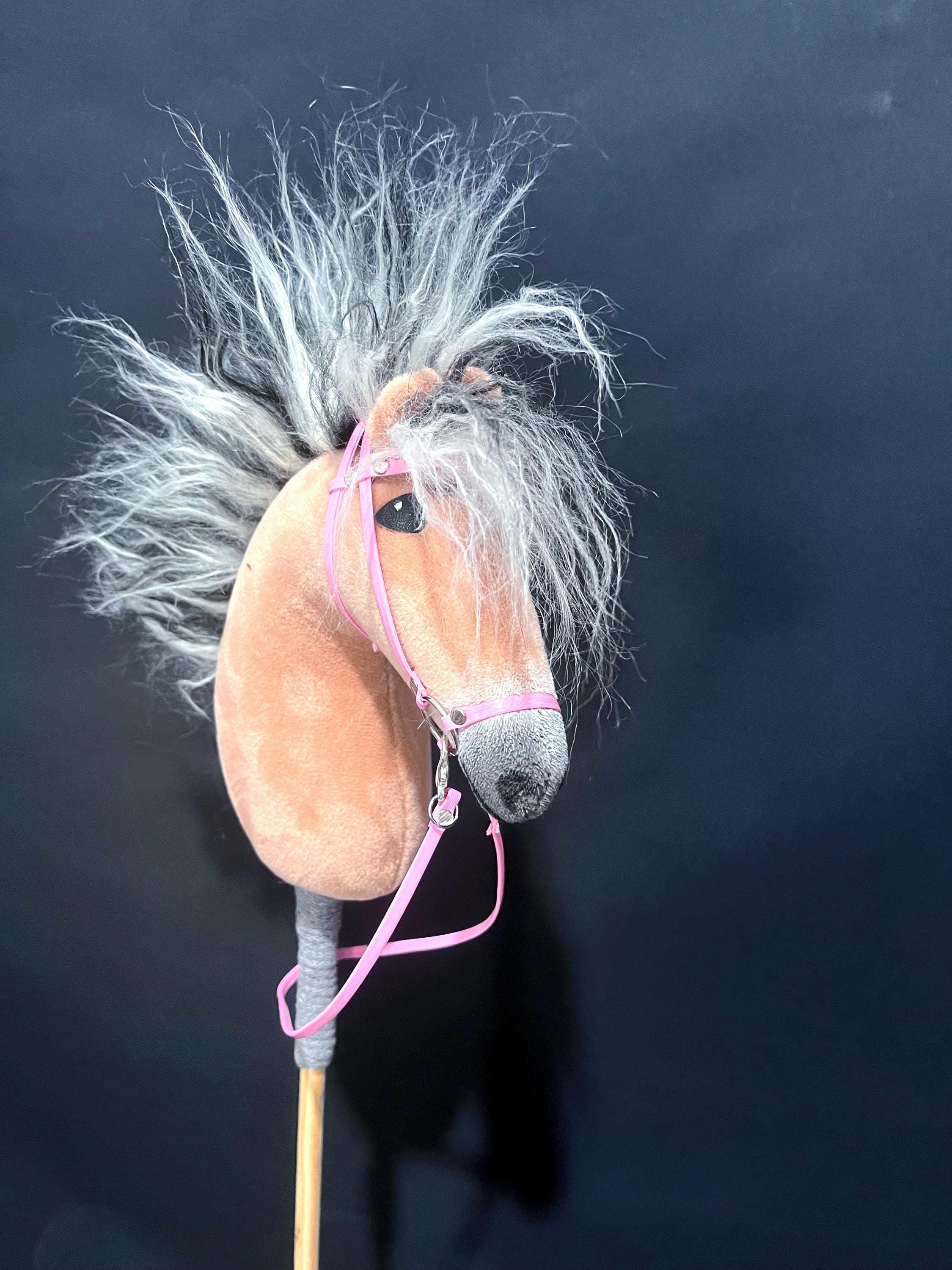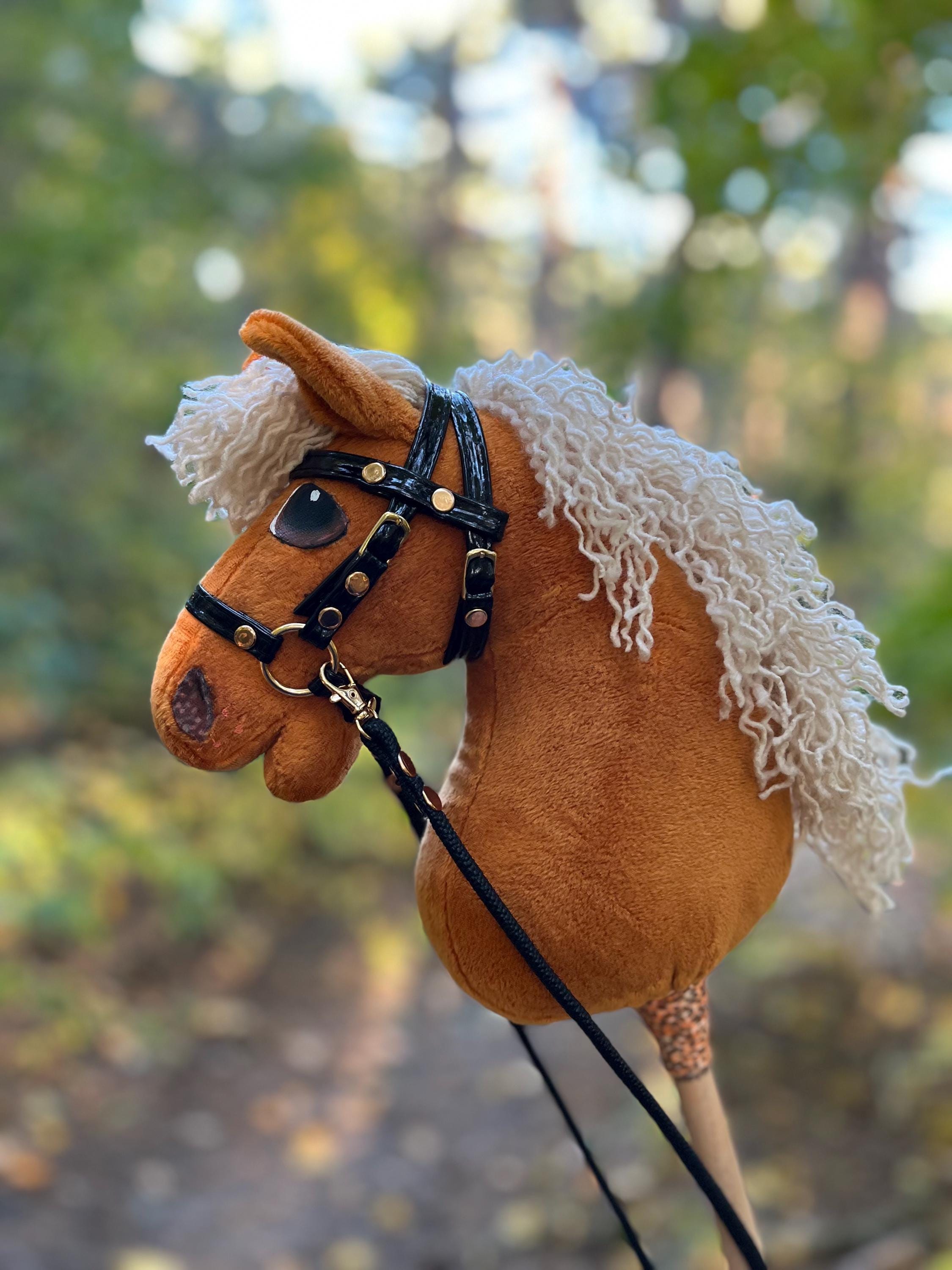 Small Fjord Hobby Horse A5 size: Beige Funny Stick Horse with Bridl...