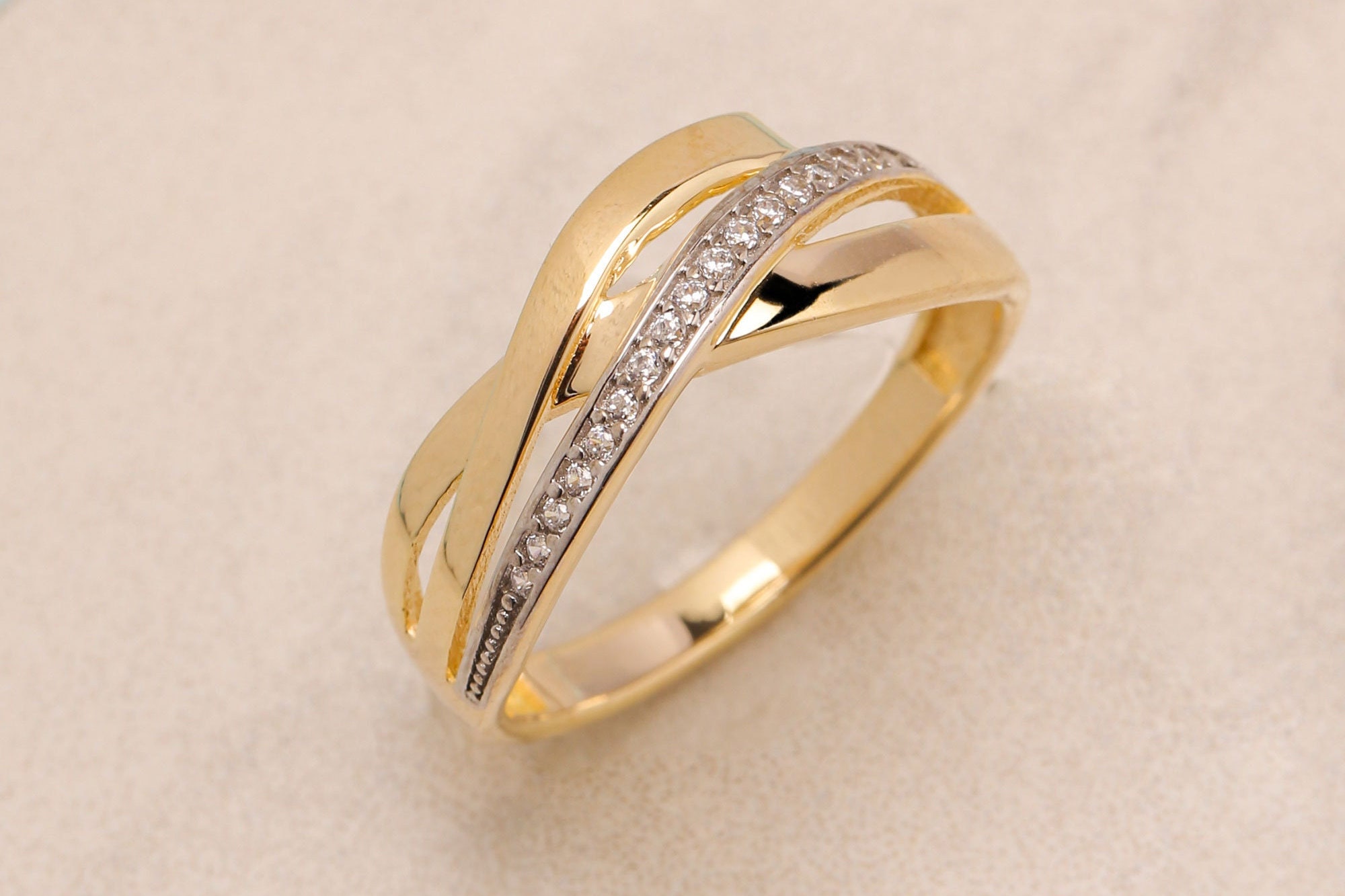 14K Solid Gold 2 Tone Ring, 925 Sterling Silver 2 Tone Ring, Two To...