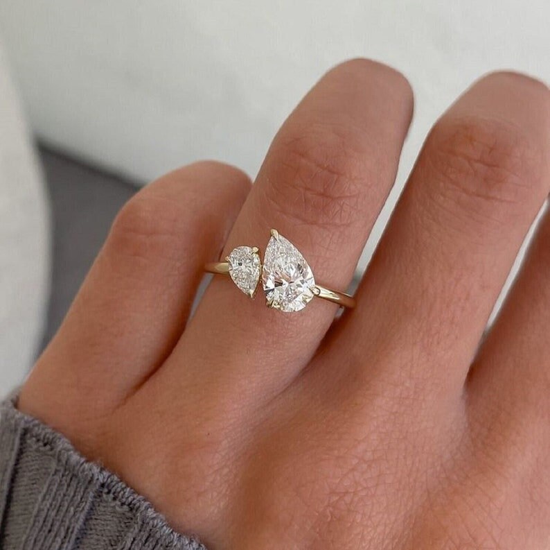 2.30 Carat Toi et Moi Emerald and Pear Cut Lab Grown Diamond Ring /...
