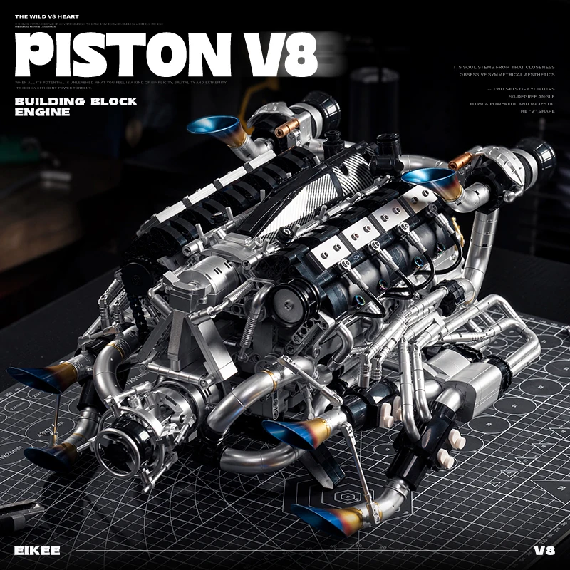 New High-tech V8 Engine Motorized Simulation Model Electrically Drive Building Blocks Car Parts Toys...