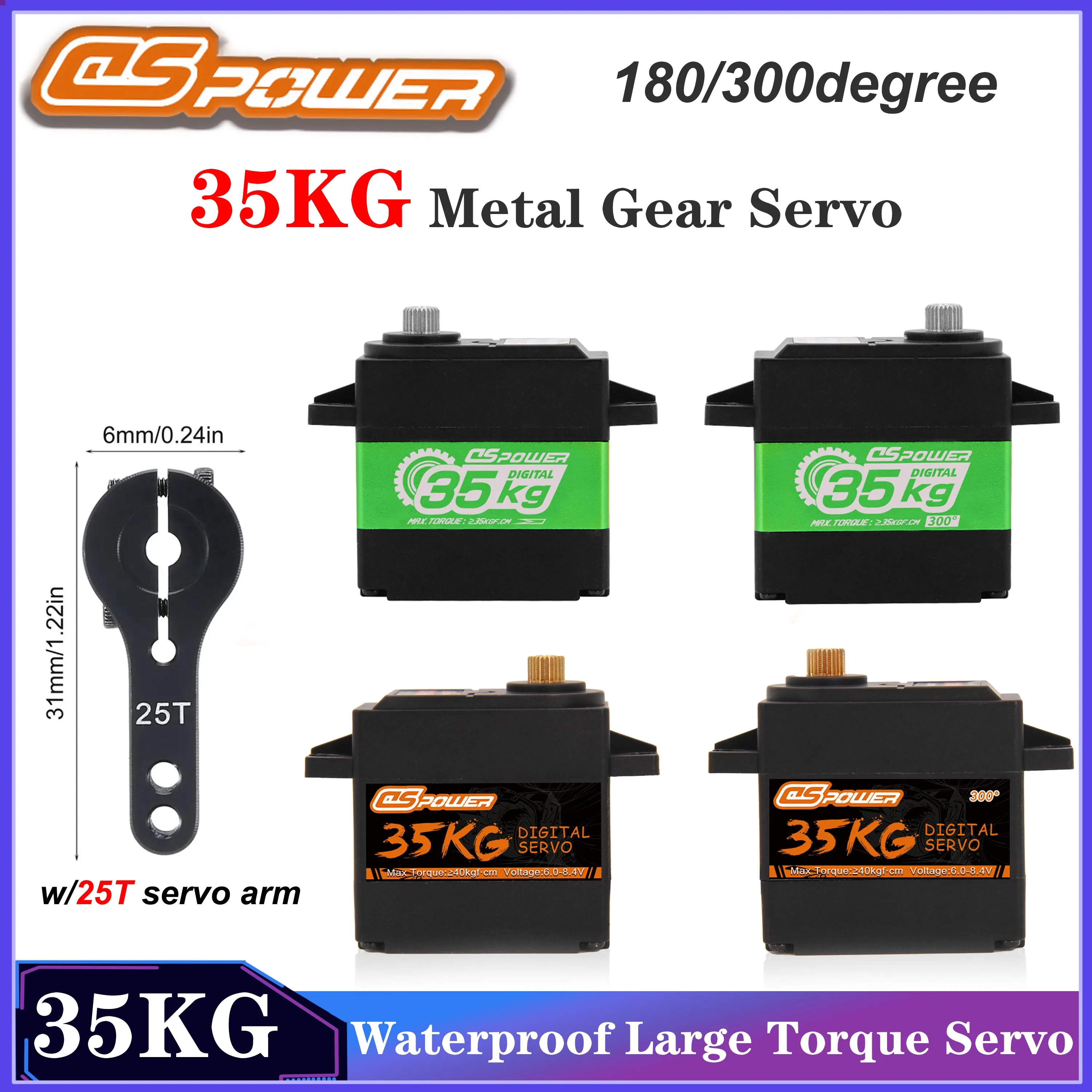 DSpower 35KG Digital Servo Waterproof Large Torque Metal Gear Servos 180/300degree 25T Arm for RC Ca...