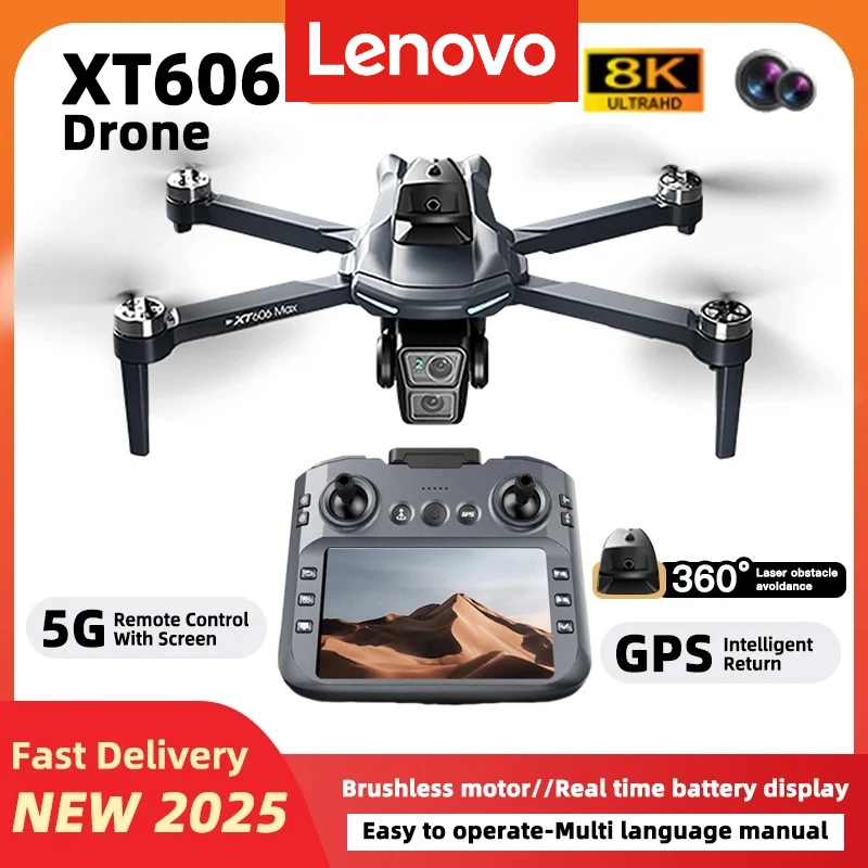 Lenovo XT606 GPS Drone 4K 3-Axis PTZ Dual Camera Obstacle Avoidance Brushless Motor 5G WIFI 3KM RC Q...