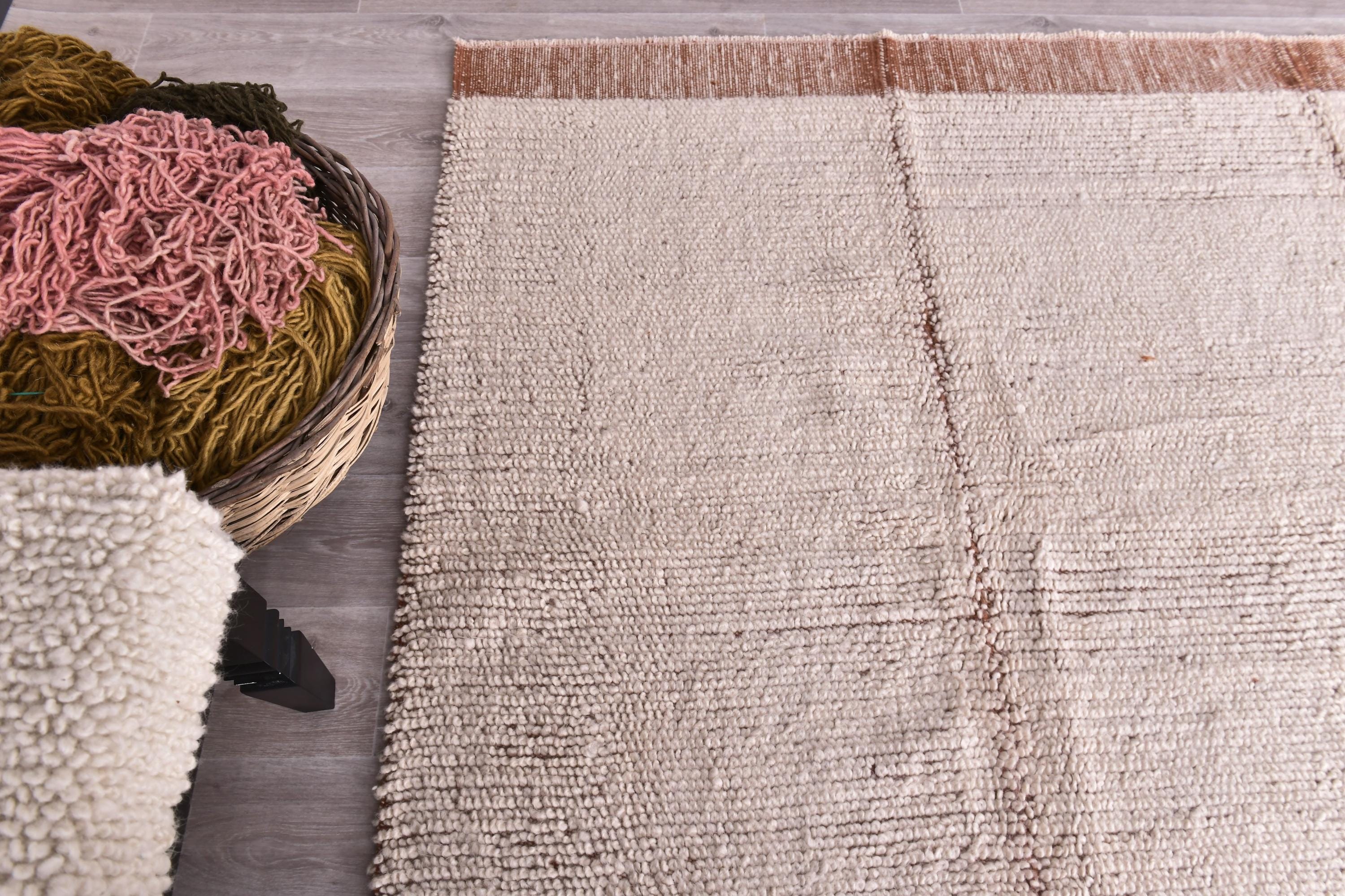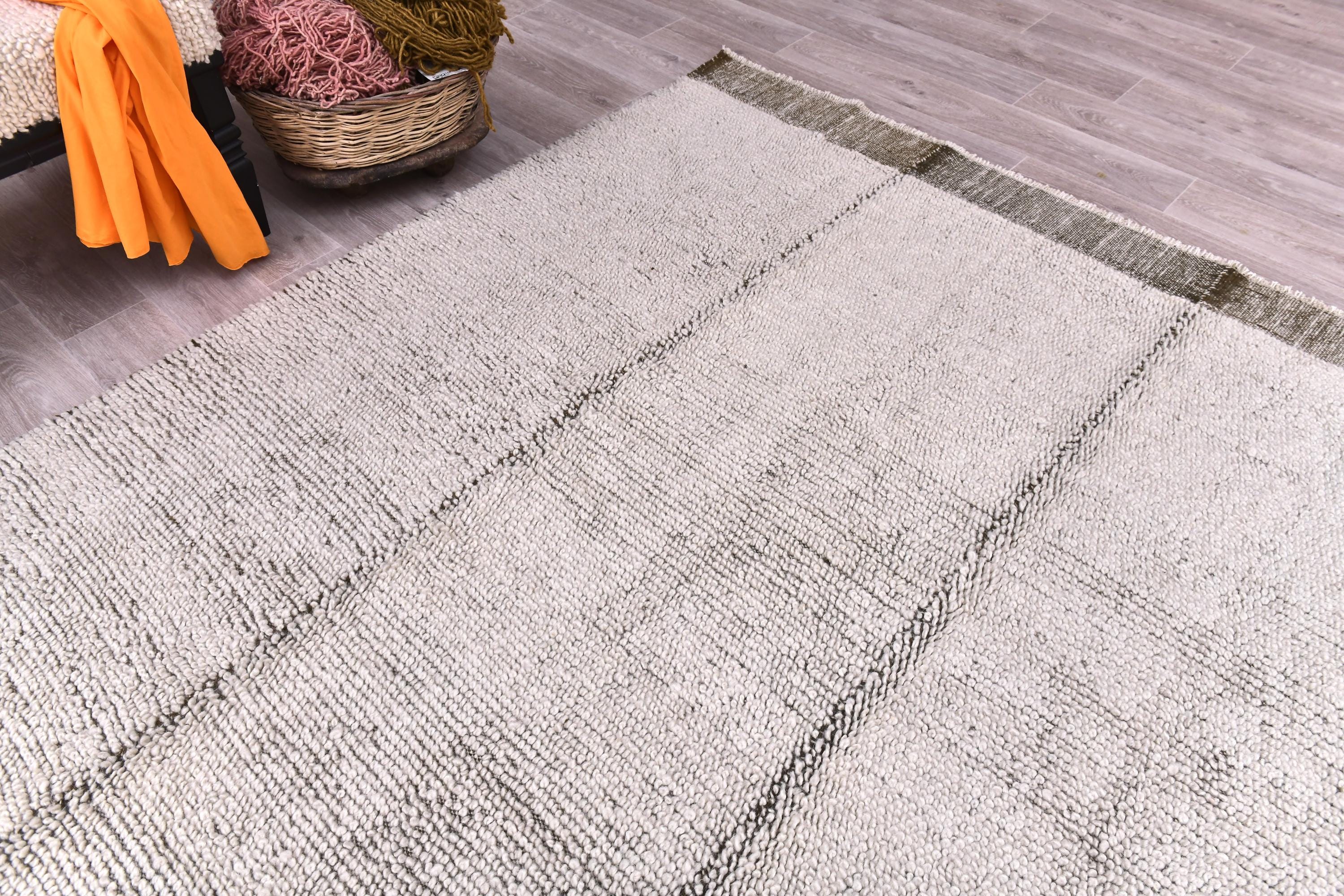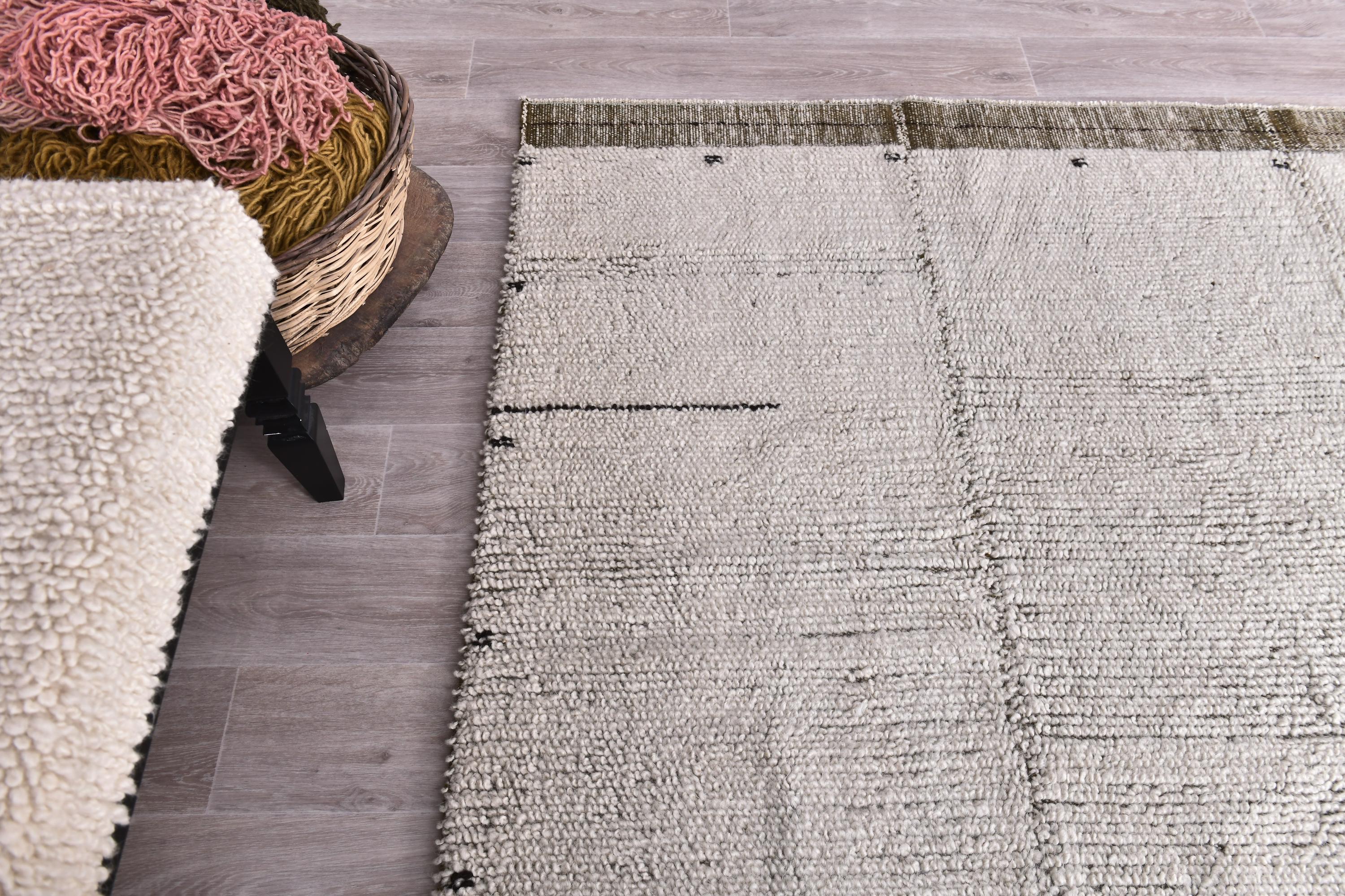 Hand-Woven Chunky Wool and Jute Rug, White & Beige Natural, Modern, Living Room Rug, Bedroom Rug...