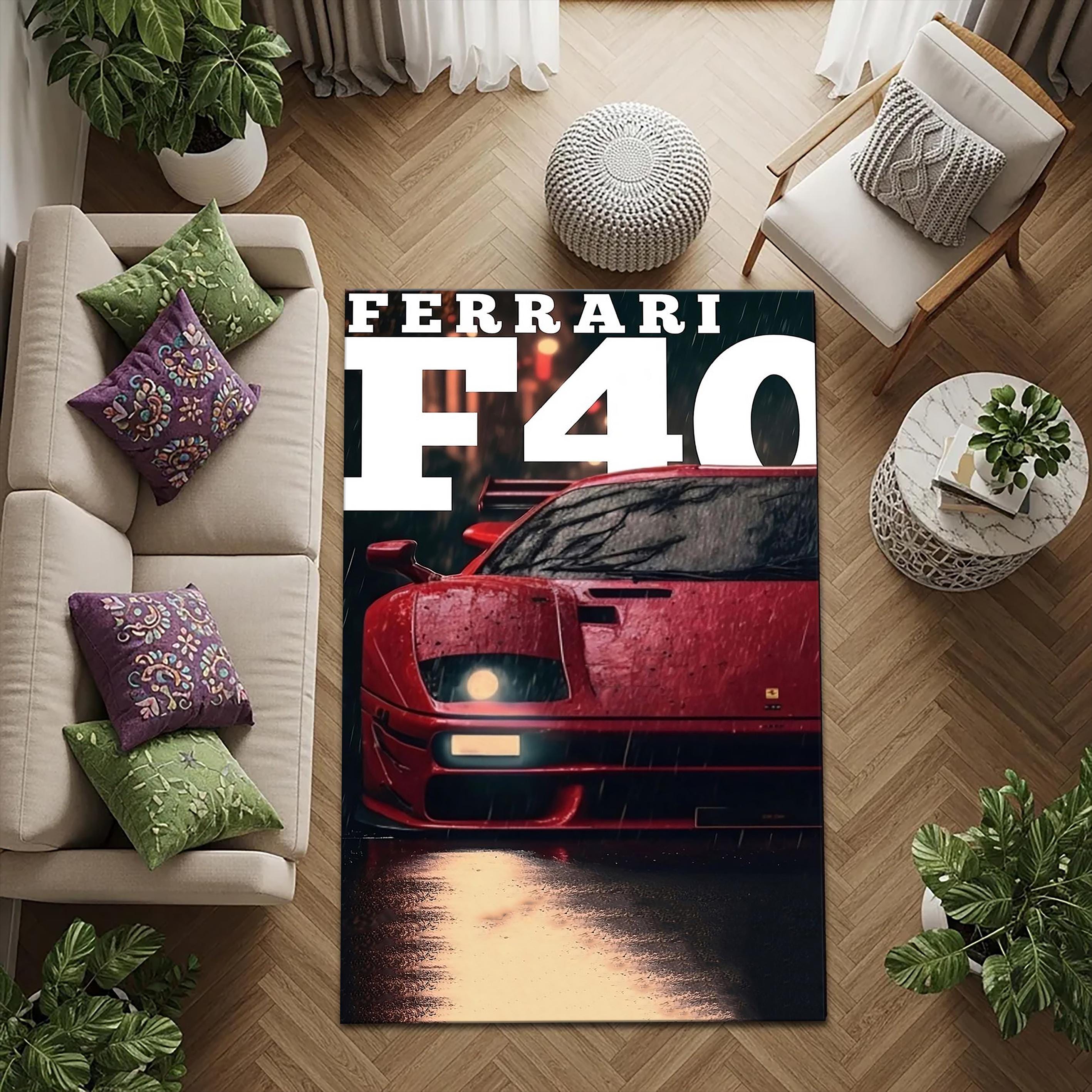 • Ferrari F40 Rug, Ferrari Rug, Luxury Car Rug, Auto Lovers Gift , Su...