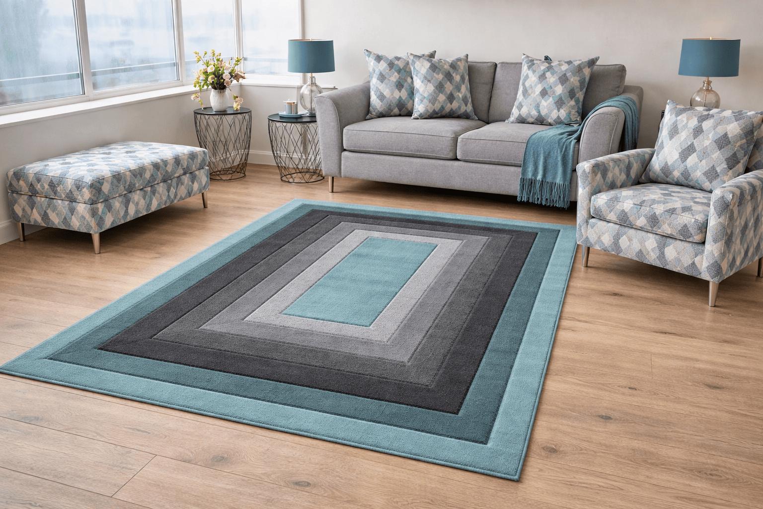Duck Egg Light Blue Silver and Grey Border Design, Modern Contempor...