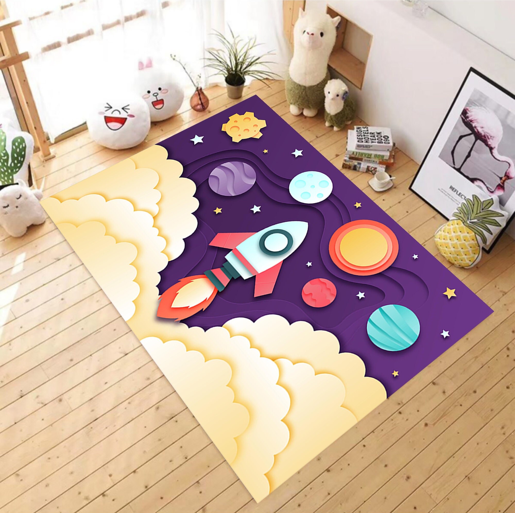 Purple Space Rug,Rocket Rug,For Living Room Rug,Fan Carpet,Area Rug...