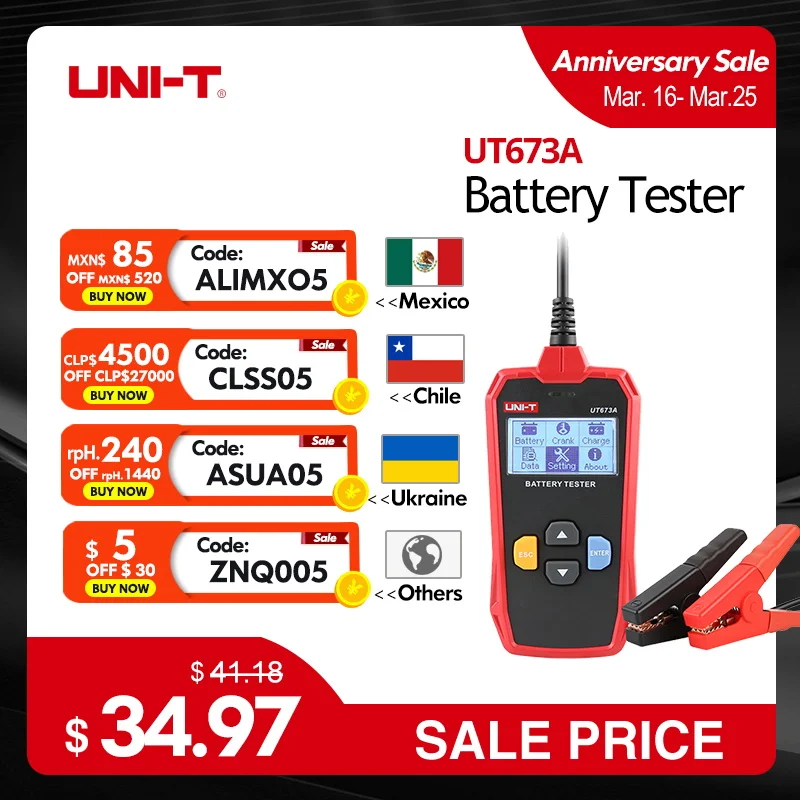 UNI-T Car Battery Tester UT673A UT675A 12V 24V DC Load Tester Capacity Meter Battery Checker Chargin...