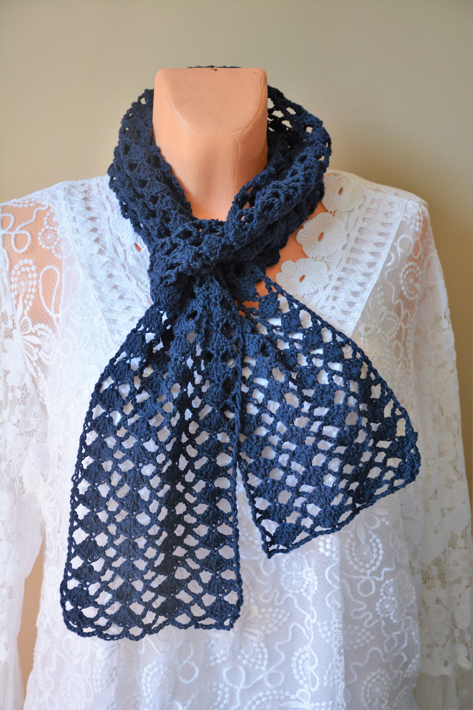 Navy Blue Lace Long Scarf. Navy Blue Lace Wrap Scarf. Sorf Navy Blu...