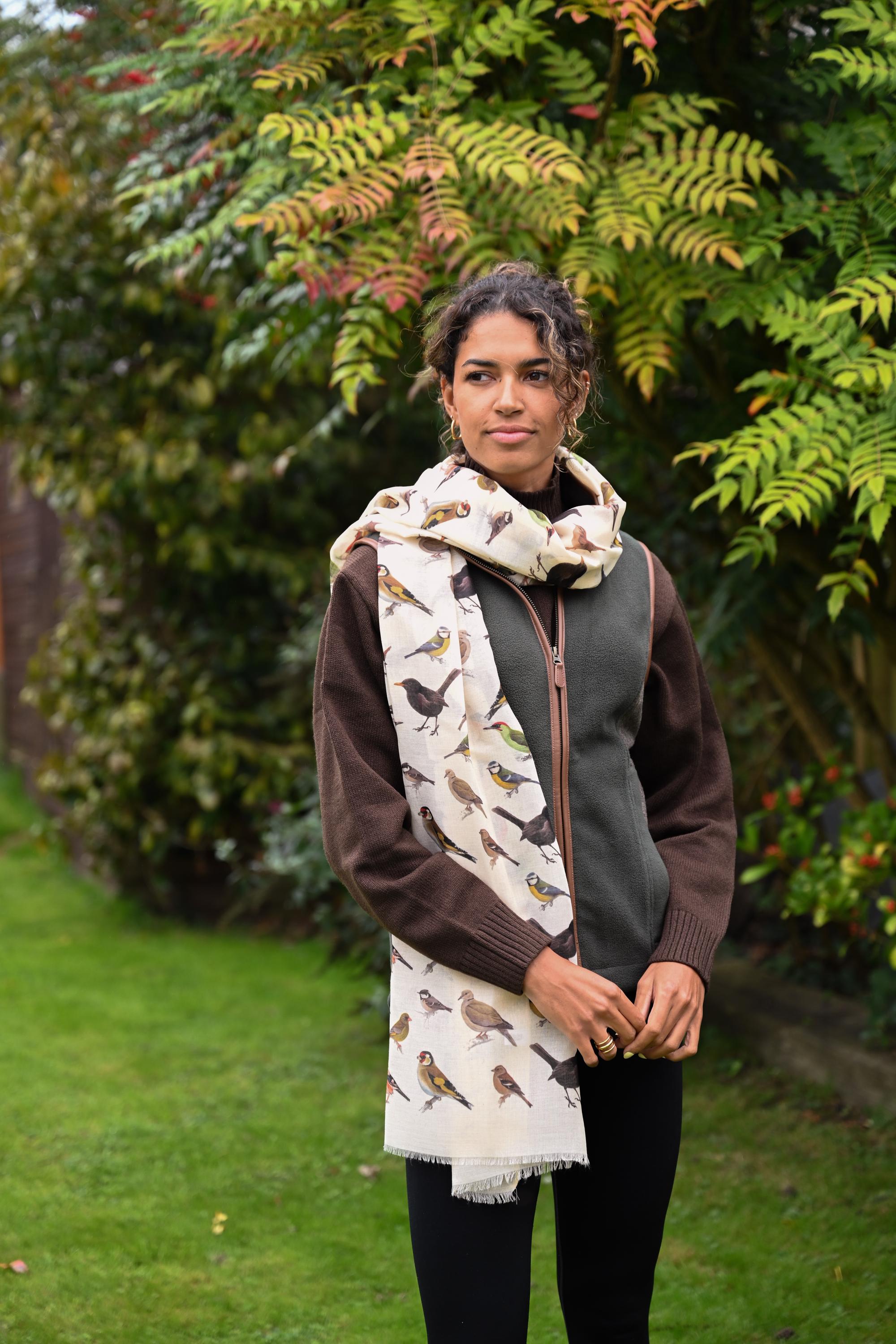 Garden Bird Scarf | Nature Inspired Scarf, Songbird Print Wrap, Bir...