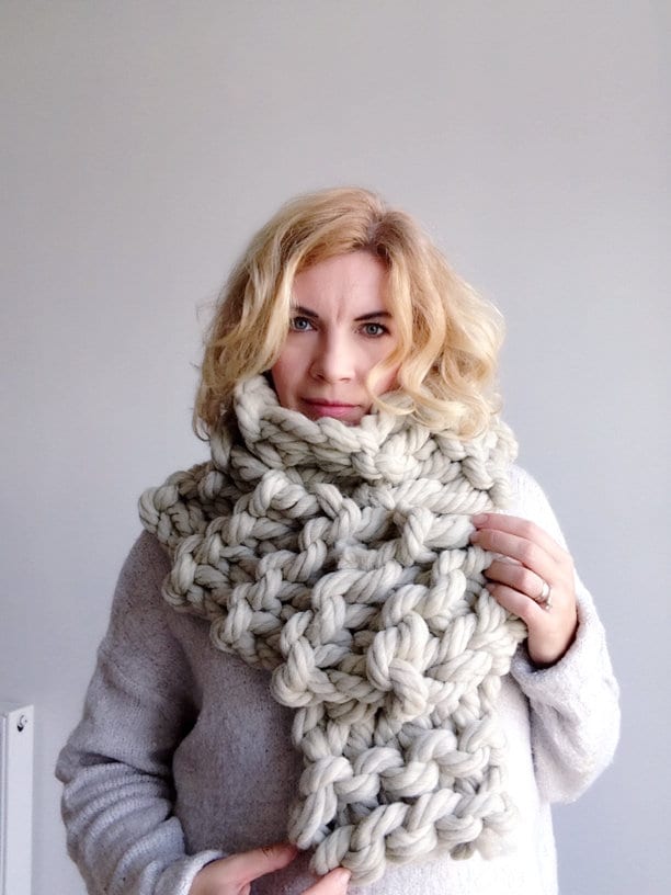 Chunky knit scarf Beige wool giant merino yarn arm knitted cowl Big...