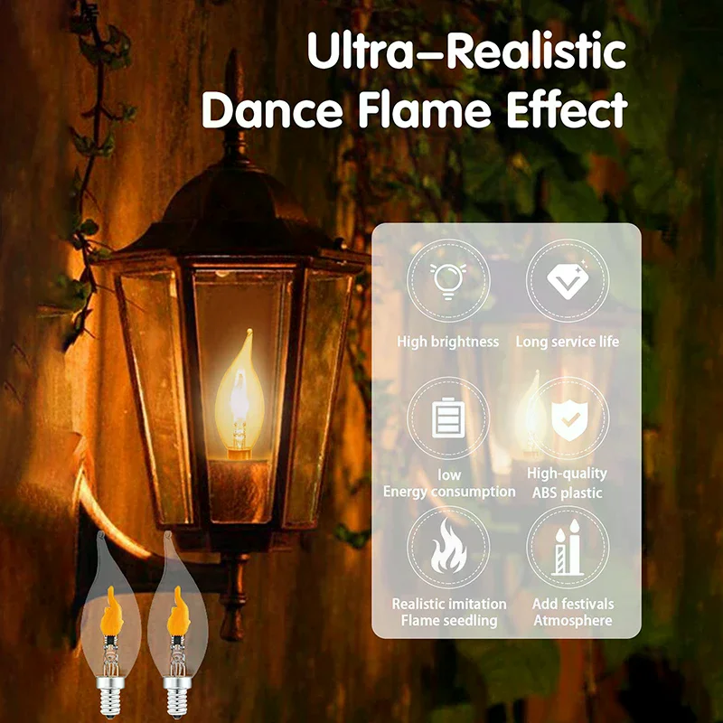 Flickering Flame Light Bulbs E12/E14/E27 LED Flickering Flame Decoration Light Bulbs More Realistic ...